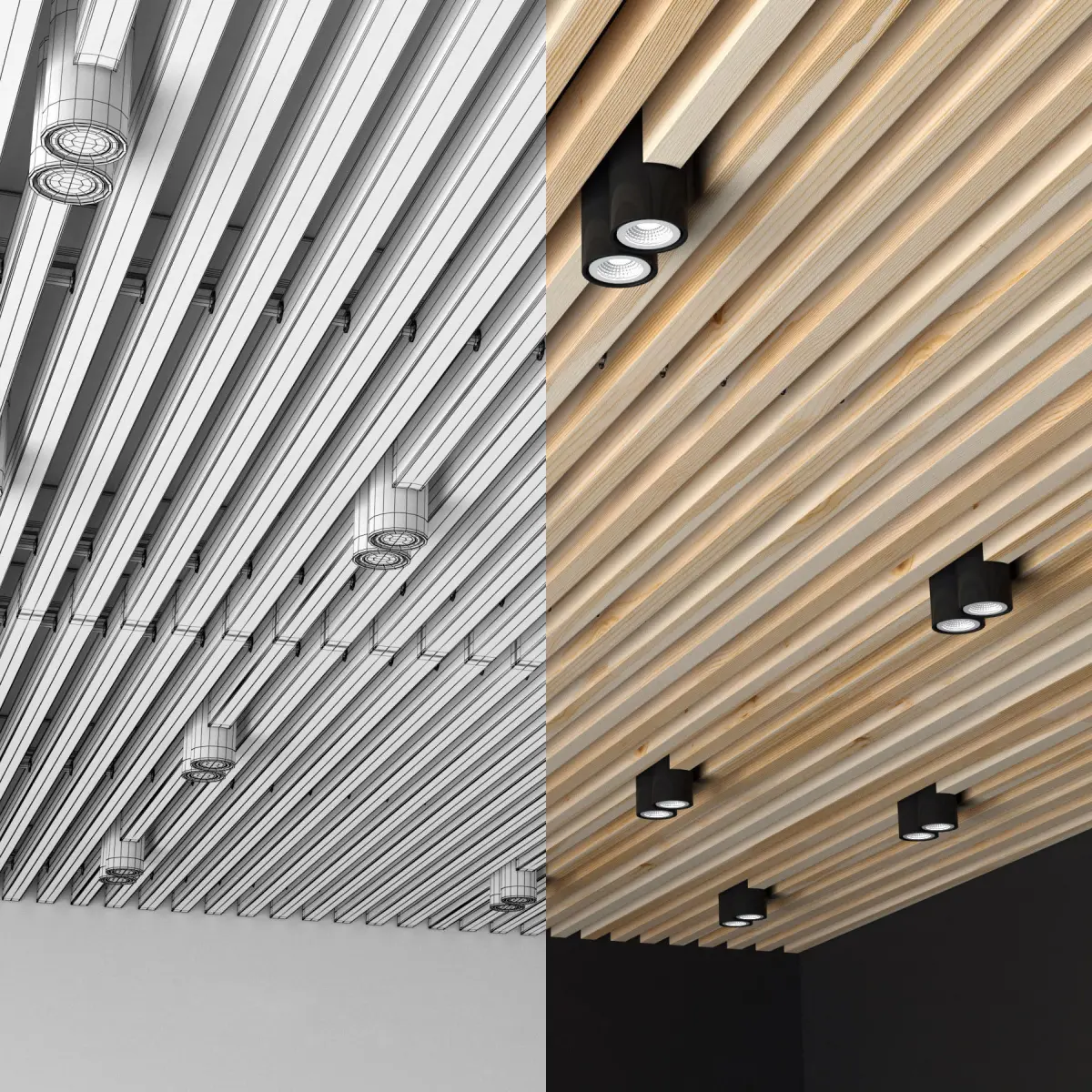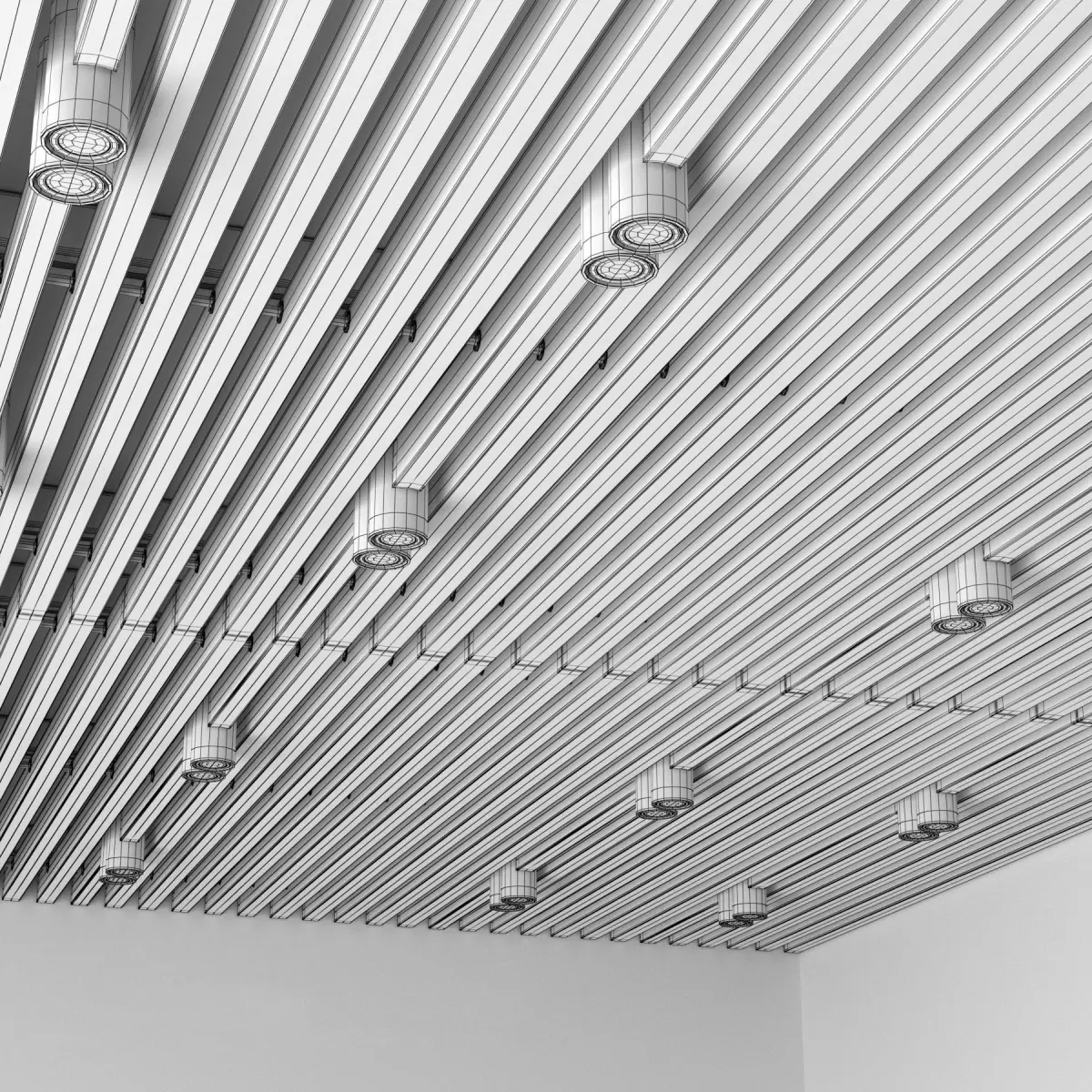 Roof ceiling, with structural elements and overhead aluminum luminaires Donolux N 1595 BLACK