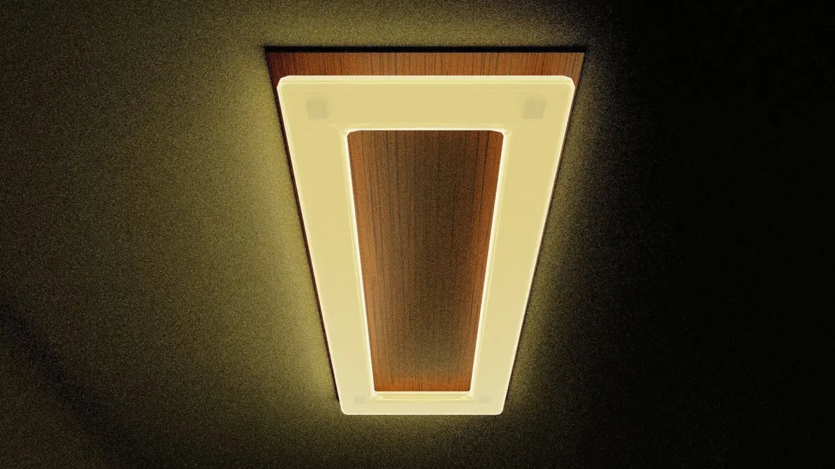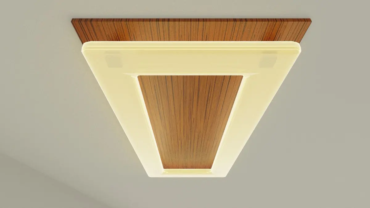 A fancy looking ceiling light with wooden base which can be placed in any interior.