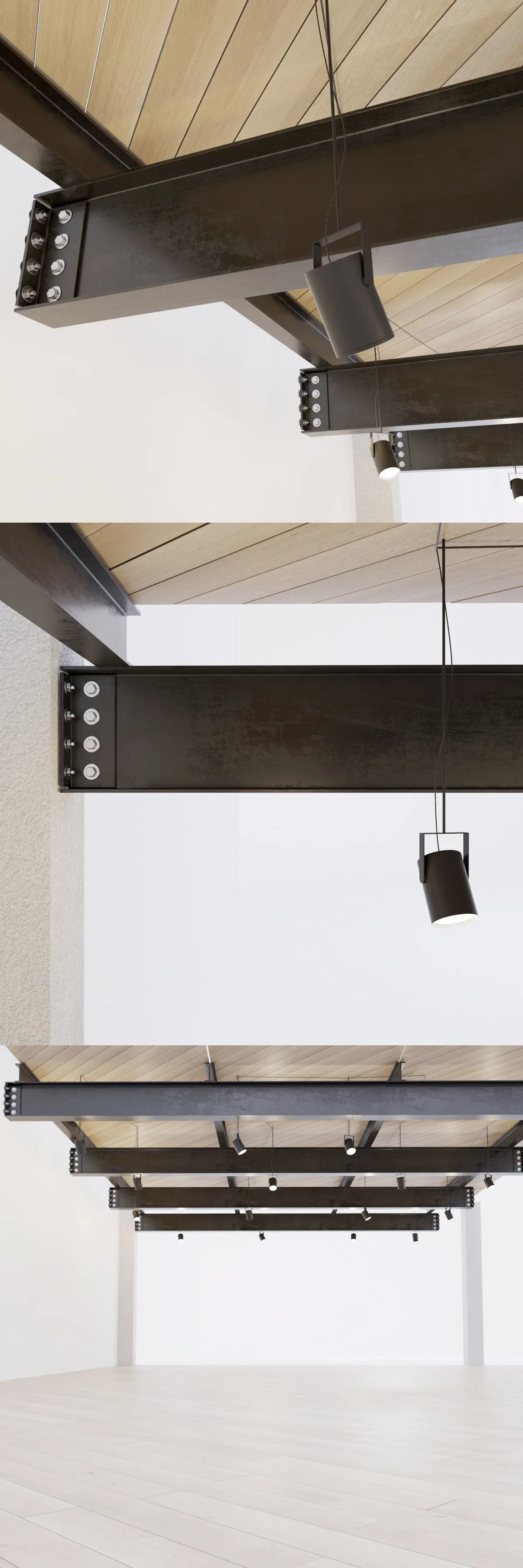 The width of the span is 6 meters. The design is easy to edit (increase the span - increase the thickness of the beam, and Vice versa). Suitable for both interior and industrial architecture.