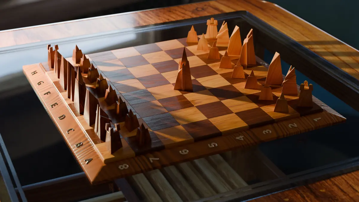 Realistic Wooden ChessBoard With Unique Chess Pieces
