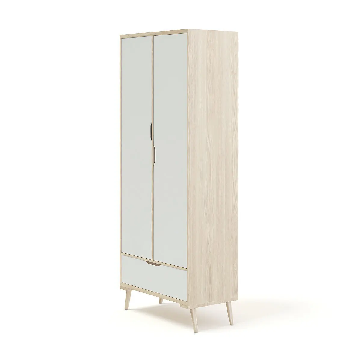 3D model of wooden children's wardrobe with white door and drawer. Compatible with 3ds max 2010 or higher, Cinema 4D R15 and many more.