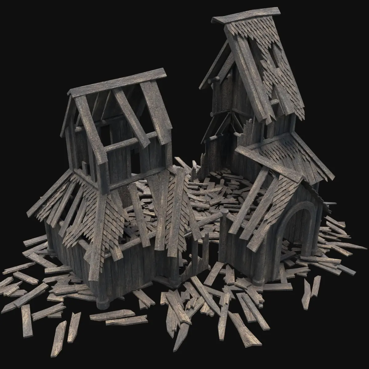 - Next gen, AAA quality, game-ready collection of wooden ruins.