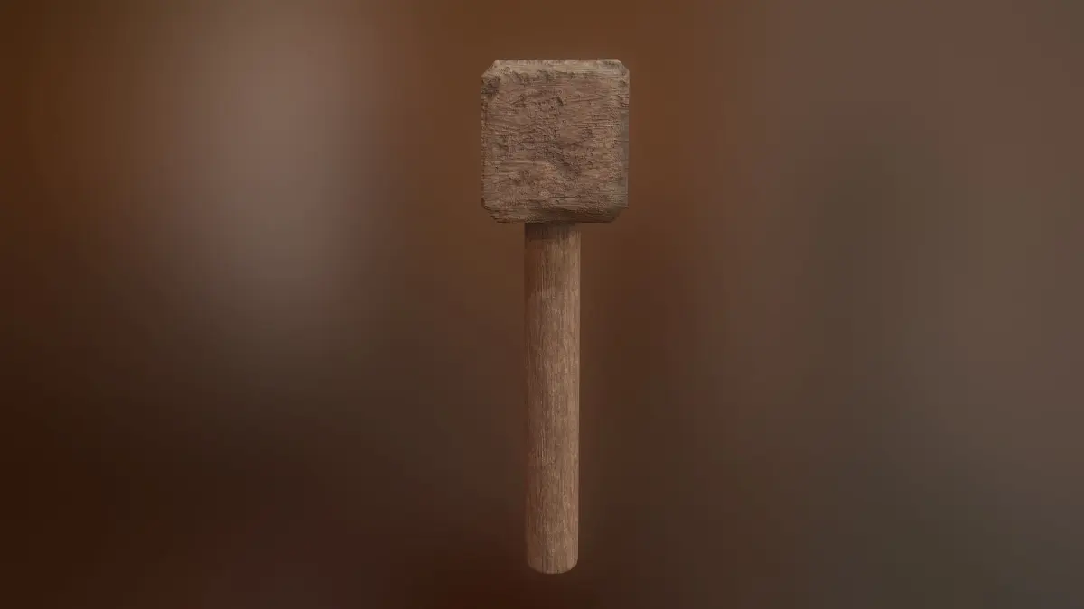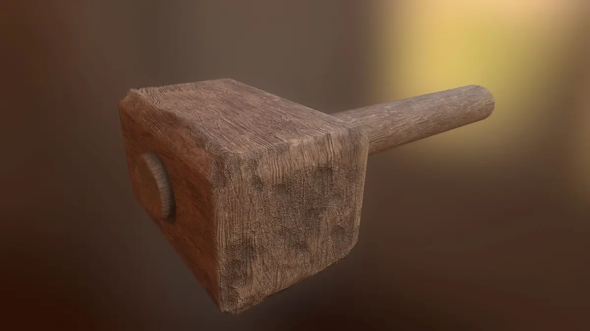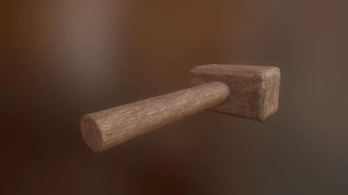 Wooden hammer low-poly 3d model ready for Virtual Reality (VR), Augmented Reality (AR), games and other real-time apps.