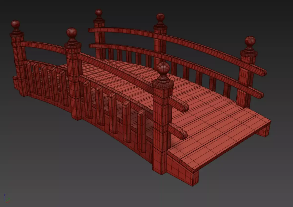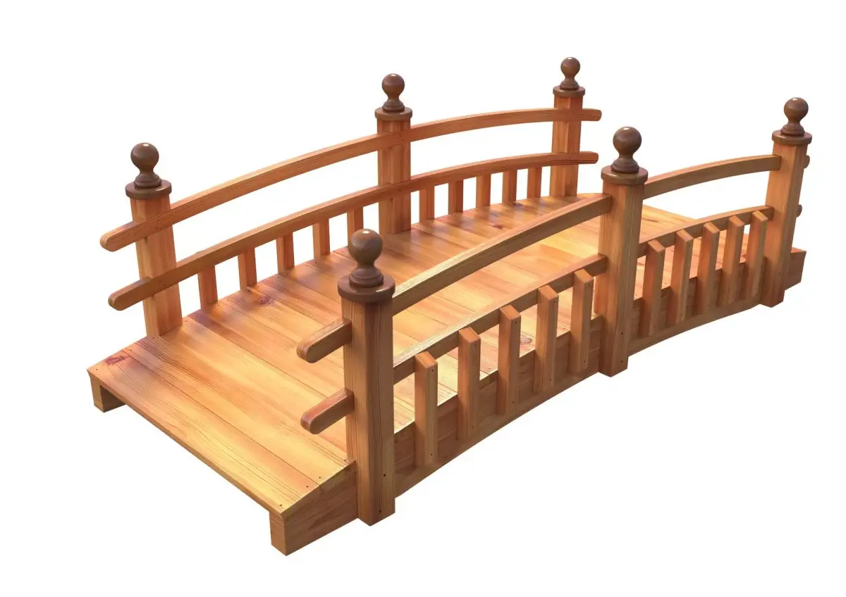 3D model Wooden Curved Garden Bridge,formats: MAX, FBX, OBJ, DWG, DXF