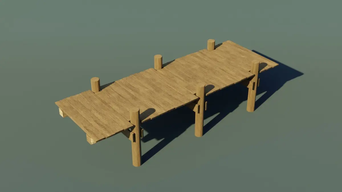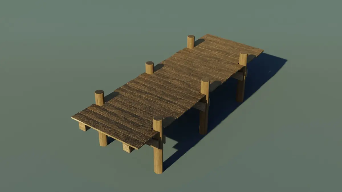 A small wooden dock. It is a wooden dock placed on round collumns. Everything is made out of wood but the texture can easily be changed and another material can be applied. The model is completely modular and can be extended in any direction, it all depends on your imagination. Perfect for placing on lakes, rivers or the seaside.