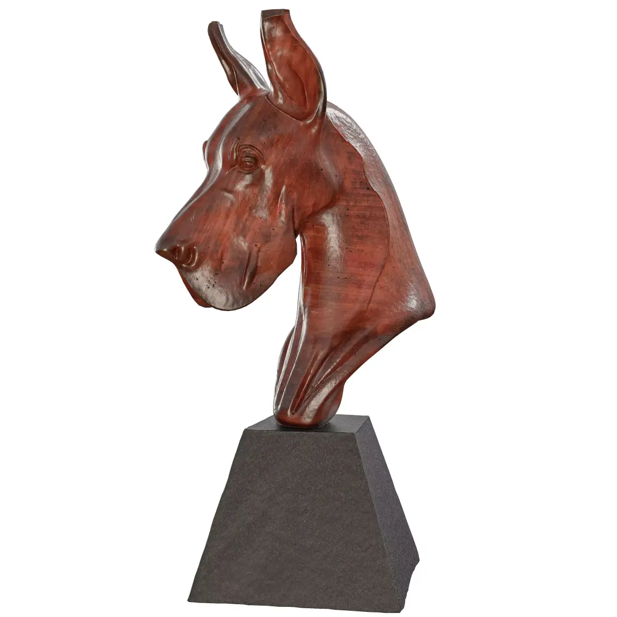 Name: Wooden Dog Head SculptType: modelFormat: 3Ds Max 2013Export: FBX, OBJRender: VRay (5.x), Corona (9)Polys: 18558Verts: 18560Matclasses: VRayMtl,_CoronaPhysicalMtlUnits: CentimetersDimension: 55.76 x 48.22 x 99.96Date: 2025.8.27This premium 3D model offers a highly detailed and realistic representation of a majestic dog head bust. The sculpture is exquisitely carved from what appears to be polished wood with a rich, dark grain. The model captures the powerful and elegant form of a Doberman Pinscher, with its distinct head shape and alert expression. This unique and compelling asset is perfect for adding a touch of sophistication, power, and natural art to any scene. It's an ideal prop for architectural visualizations, high-end interiors, and realistic game environments. High-Quality Sculpt and Textures: The model is created from a high-resolution sculpt that captures the intricate details of the dog's head, from the subtle muscle definitions to the smooth, flowing curves. The PBR (Physically Based Rendering) textures are meticulously crafted to provide a photorealistic look, with accurate maps for color, roughness, and normal detail that highlight the beautiful wood grain and polished finish.