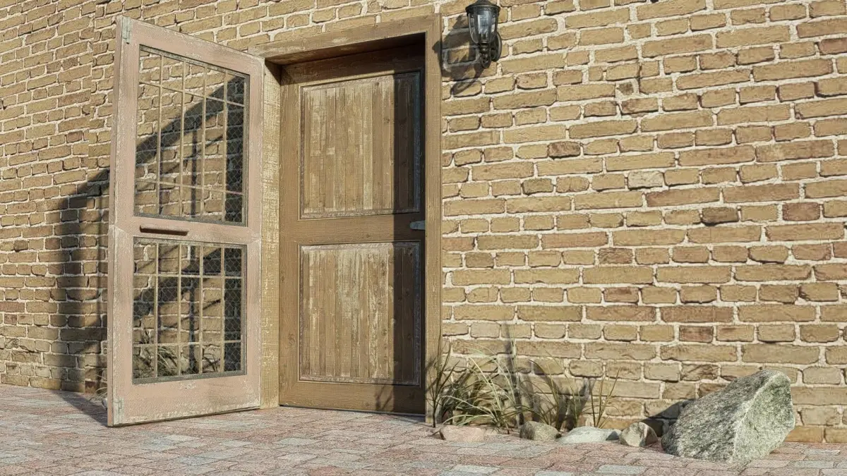 THE 3D Wooden with Fence Door Realistic design for Games Low-Poly design with crafts.