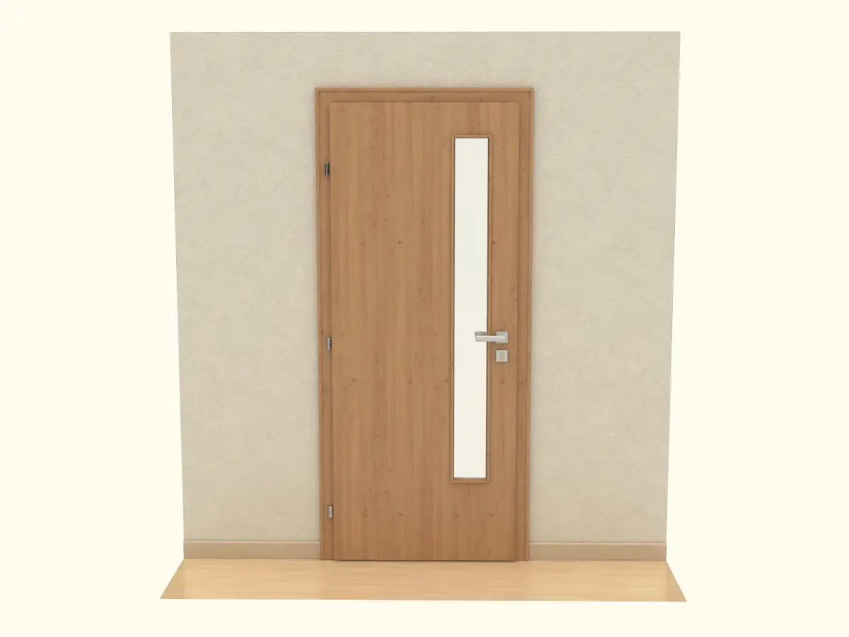 Here you will find wooden door. Modelled with fittings, lock and handle to be able be positioned opened. Rotation axis is at hinges.