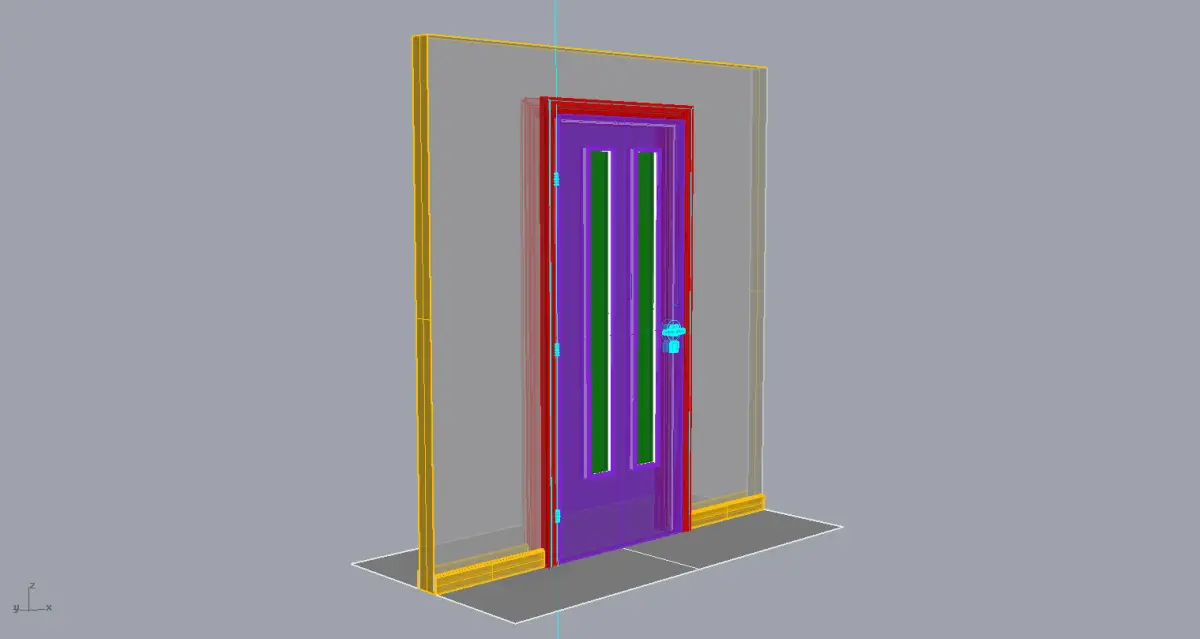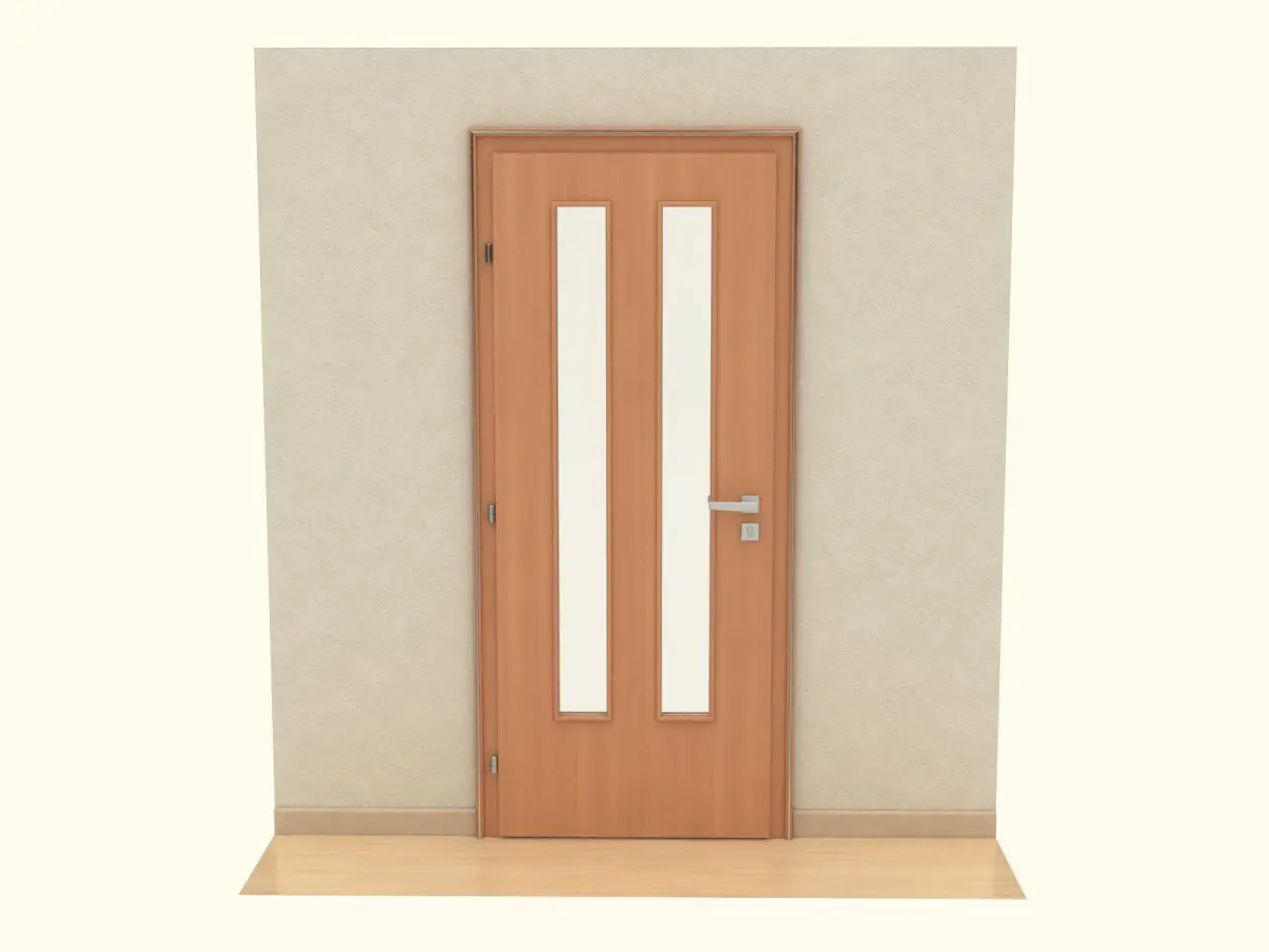 Here you will find wooden door. Modelled with fittings, lock and handle to be able be positioned opened. Rotation axis is at hinges.
