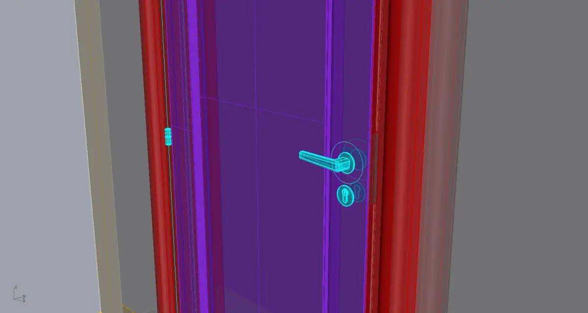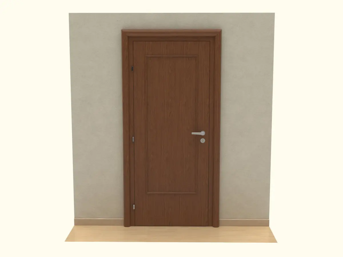 Here you will find wooden door. Modelled with fittings, lock and handle to be able be positioned opened. Rotation axis is at hinges.