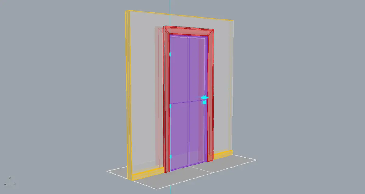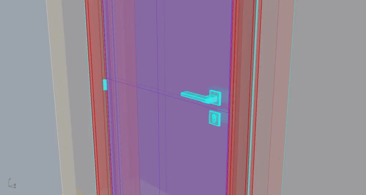 Here you will find wooden door. Modelled with fittings, lock and handle to be able be positioned opened. Rotation axis is at hinges.