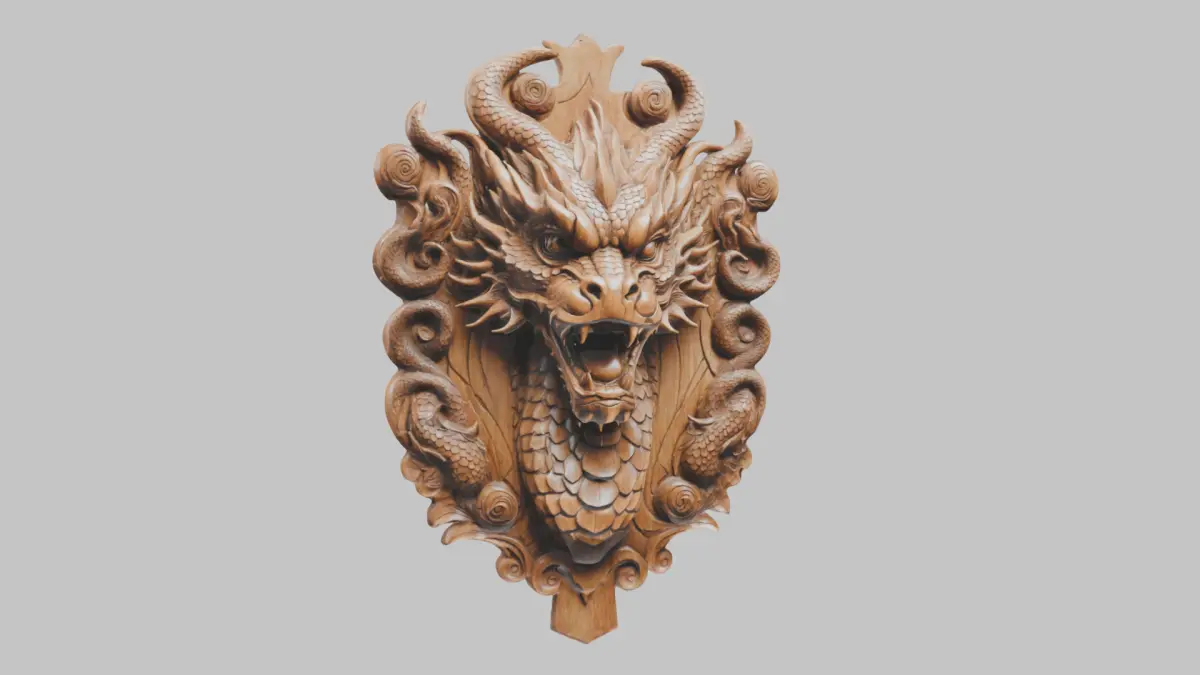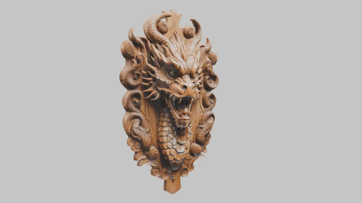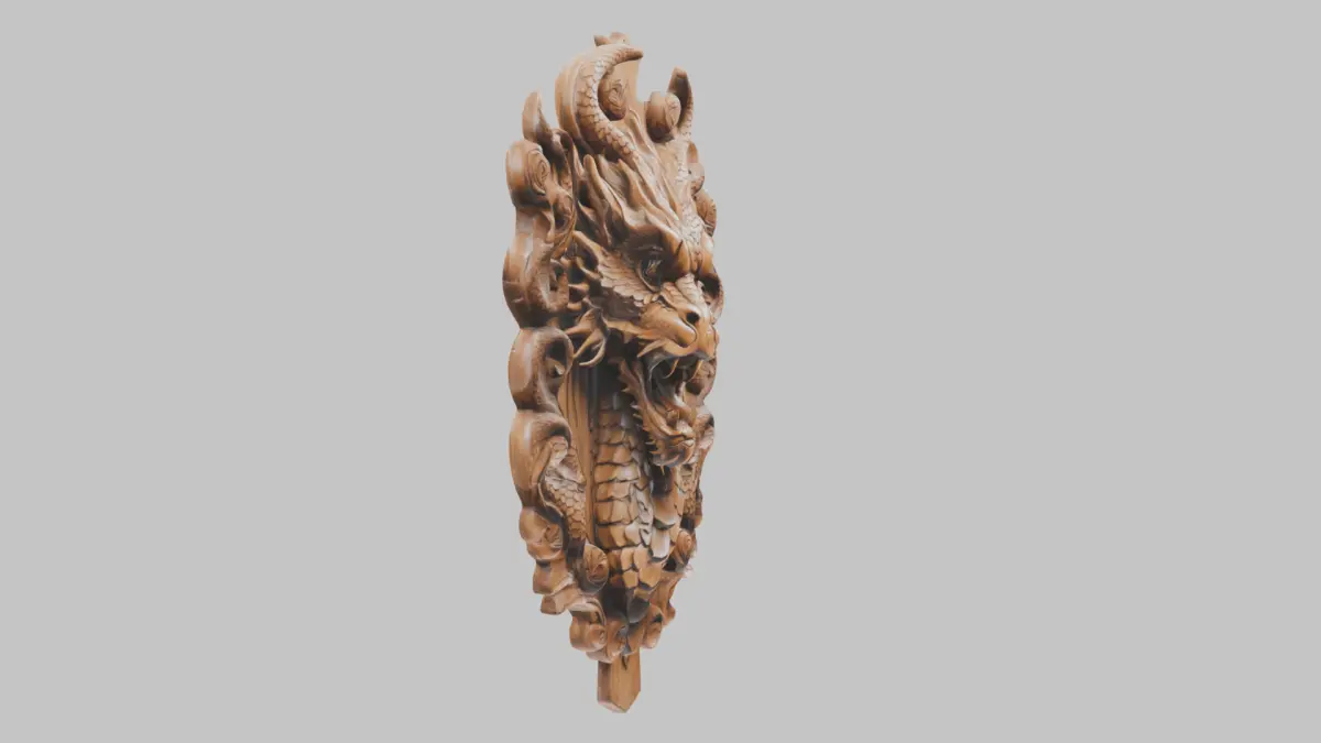 Wooden Dragon head wall mount Low-poly 3D model