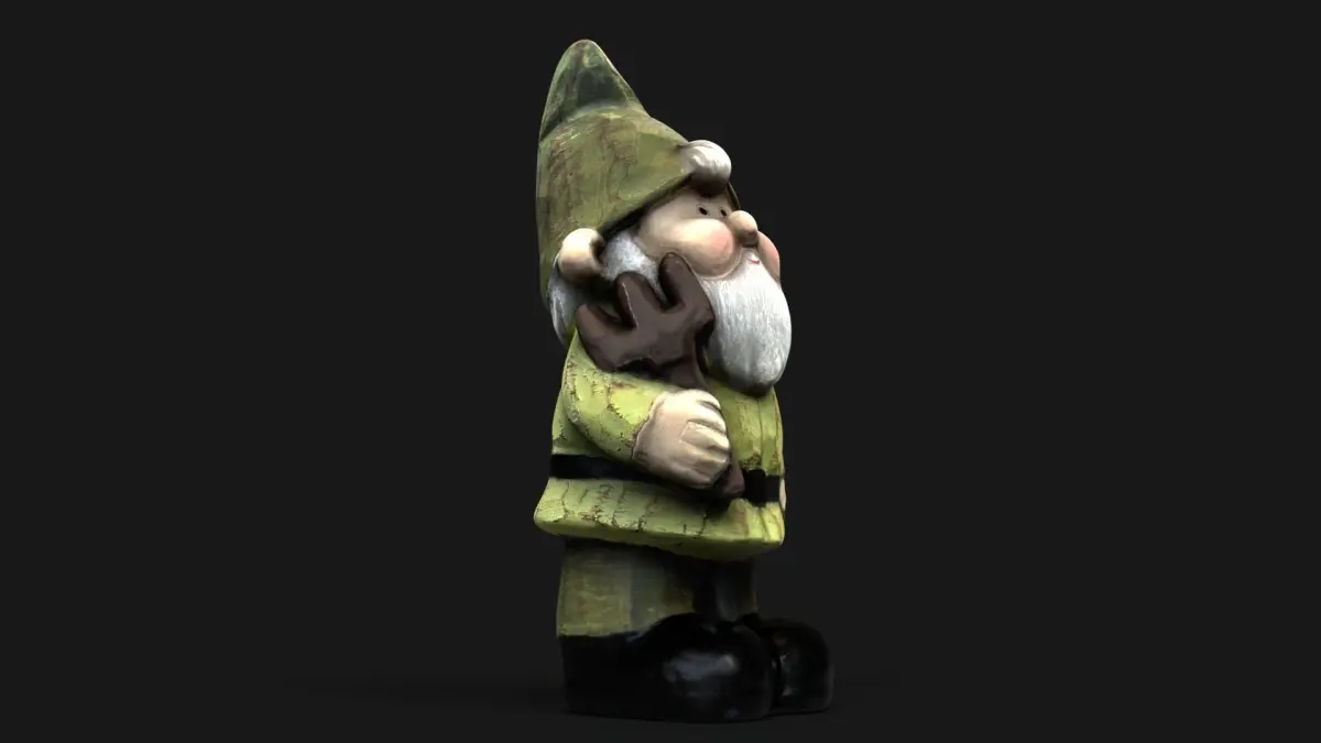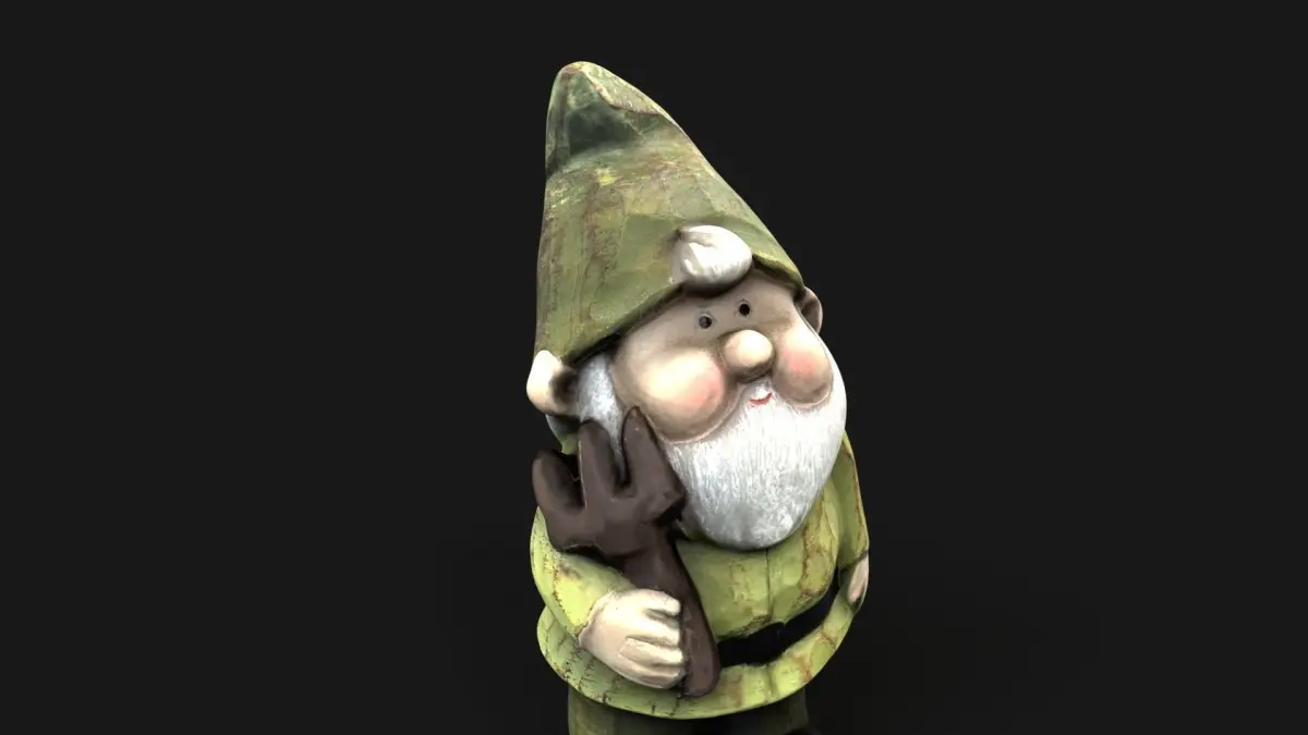 Sculpture of a wooden dwarf. Low poly model made based on a 3D scan.