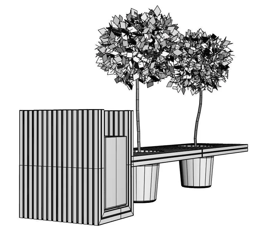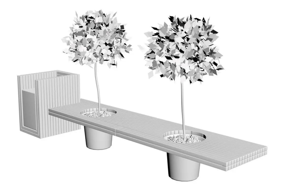 This realistic model includes the model of wooden eco design bench with integrated trash bin and small green trees. The model has high quality shaders so even simple objects look great and detailed. Model prepared for 3d architectural visualisations and other graphic works. We provide high quality work fit for both professionals and hobbyist to speed up their workflow and get great results.