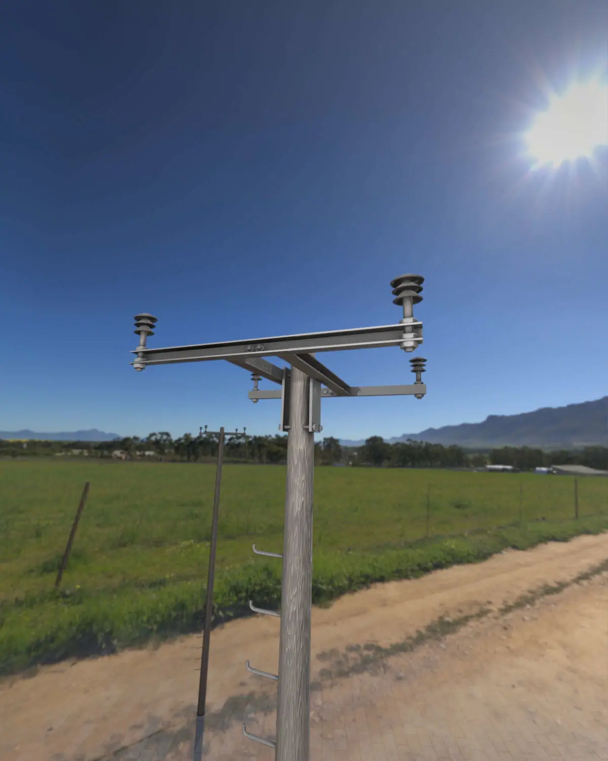 Hölzerner strommast mit Stahlsprossenleiter (Objekt 022) aus unserer modularen Strommasten-Kollektion.