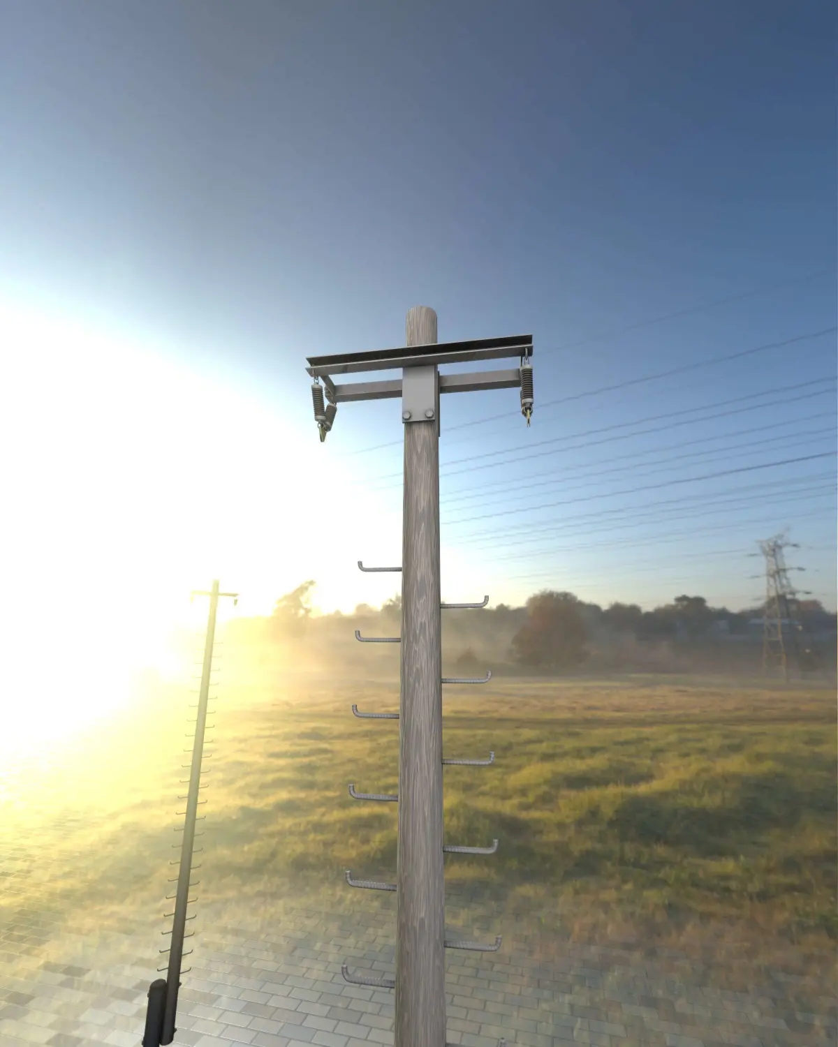 Here is the wooden electricity pole with ladder (Object 031) out of our modular power poles collection https://youtu.be/csQUDU6WjkE.