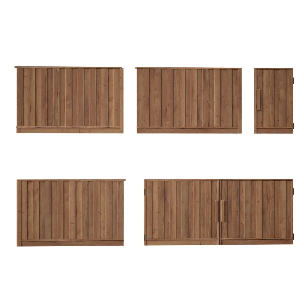 3d model of a wooden fence assembled from boards. The model includes elements of a span, a gate and a gate on canopies with handles. The model includes seven different materials with different textures.