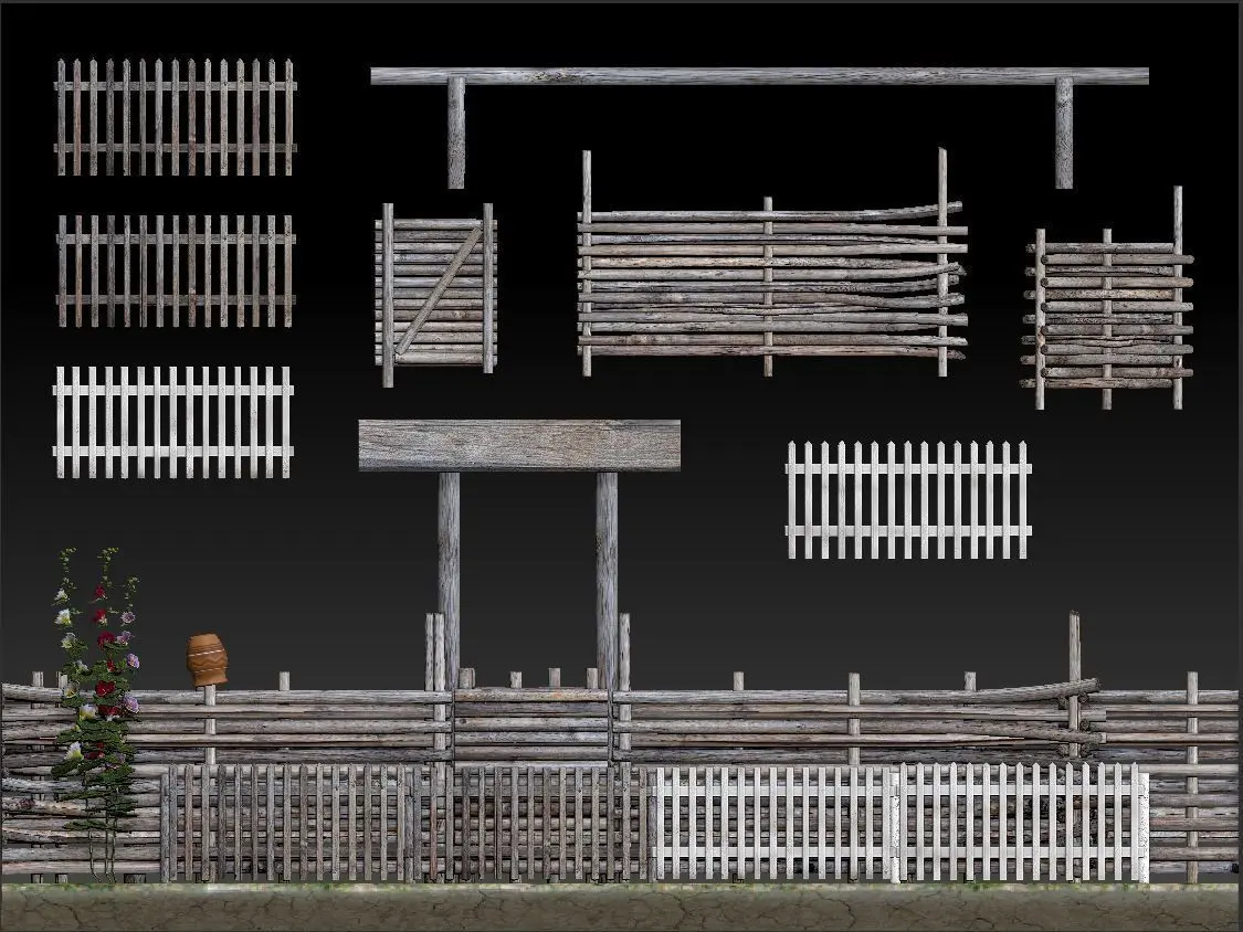 Fence modular 6 types - 12 elementslow-poly - oll set - Polygons: 10743: Vertices: 5653.