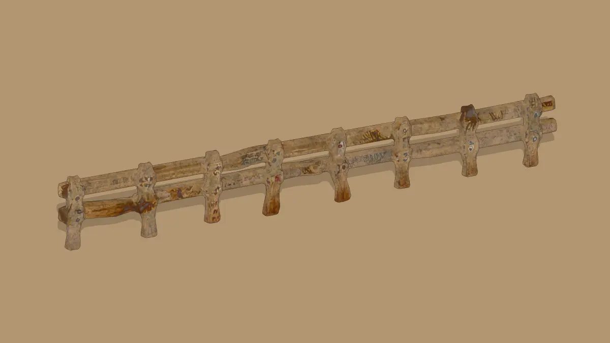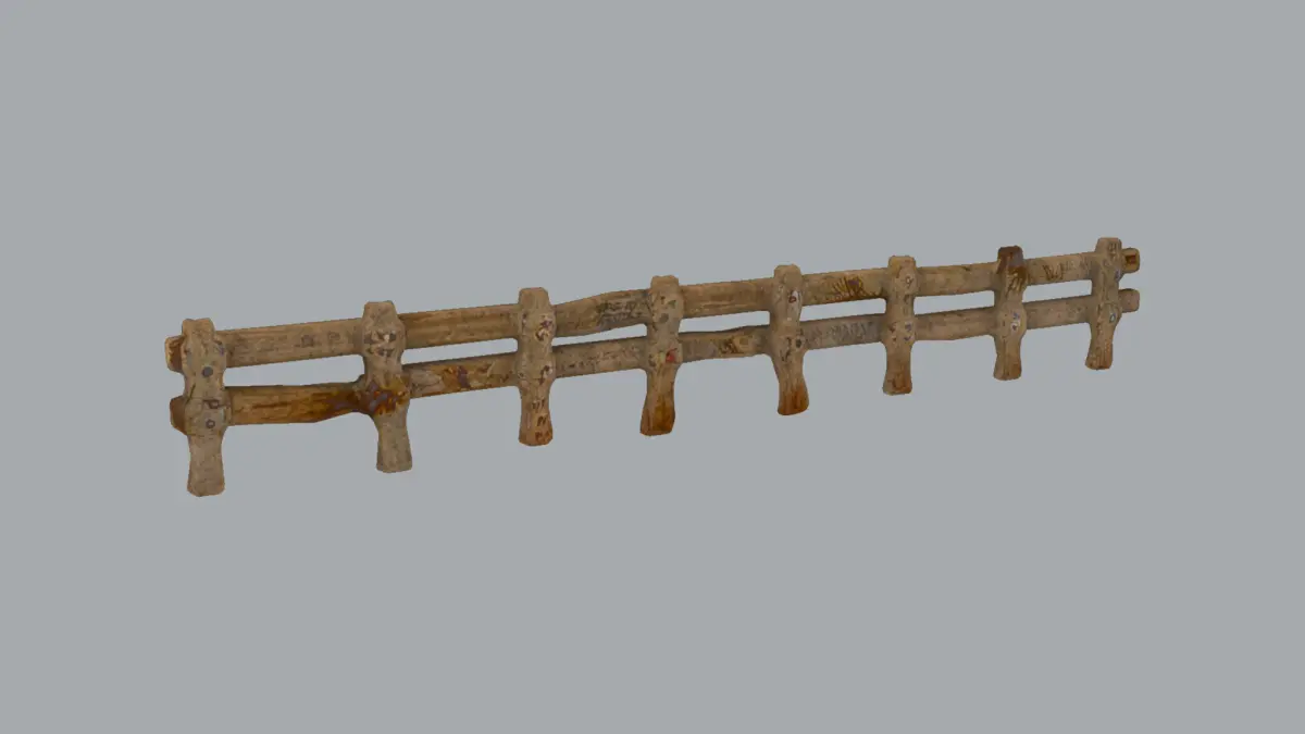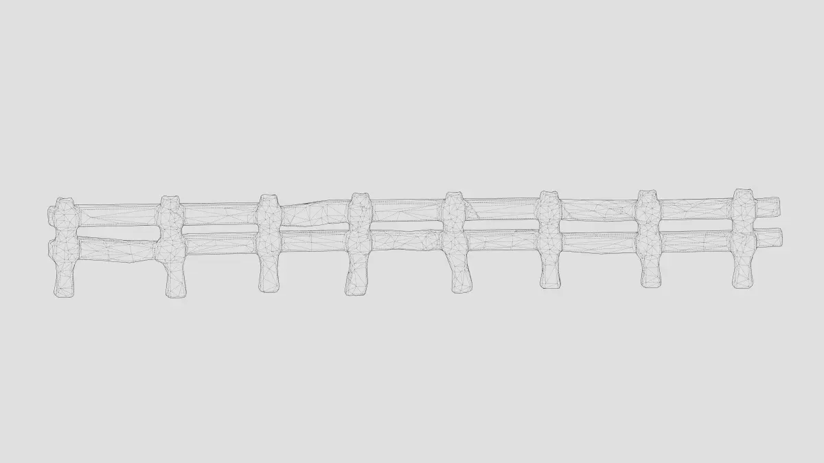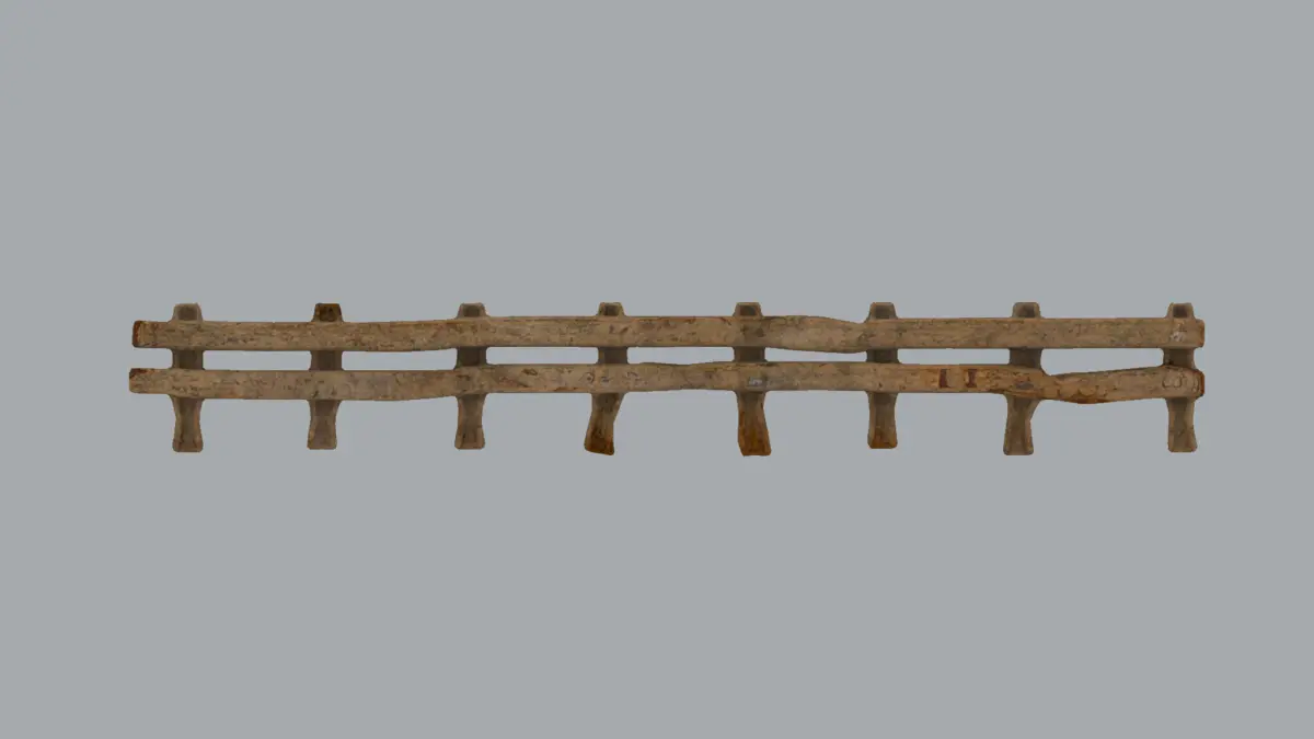 This 3D low-poly model features a rustic wooden fence, characterized by its weathered texture and uneven logs. The design captures the charm of a countryside setting, with visible wear and natural wood tones, making it ideal for rural or farm-themed game environments, animations, or landscape renders. Its simplicity ensures seamless integration into various outdoor scenes.