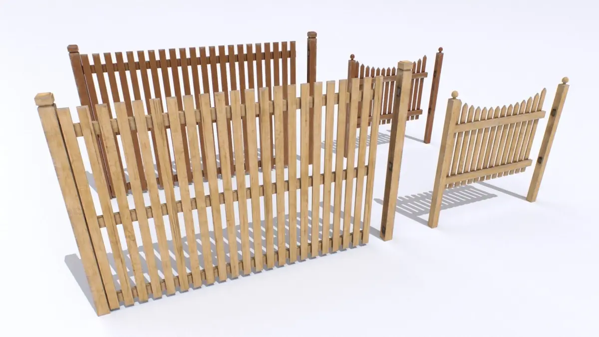 Pack of 2 wooden fences. Based in real ones. Realistic scale. 4 meshes, 2 fences and 2 endings.