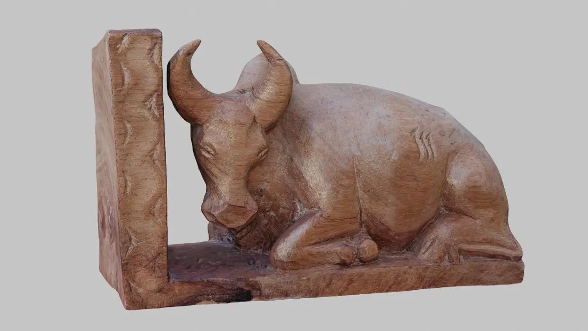 Photogrammetry scan, 3D scan, Carving, Souvenir, Traditional, Cultural, Art, 3D Model, Home Decor, Indigenous, Folk Art, Handmade, Collectible, Sculpture, Decoration, Gift, Artistic, Digital asset, Zebu, Bookstopper, Madagascar, africa, Hand-carved, Artisans, Cattle, Polished, Tactile, Horns, Shelf
