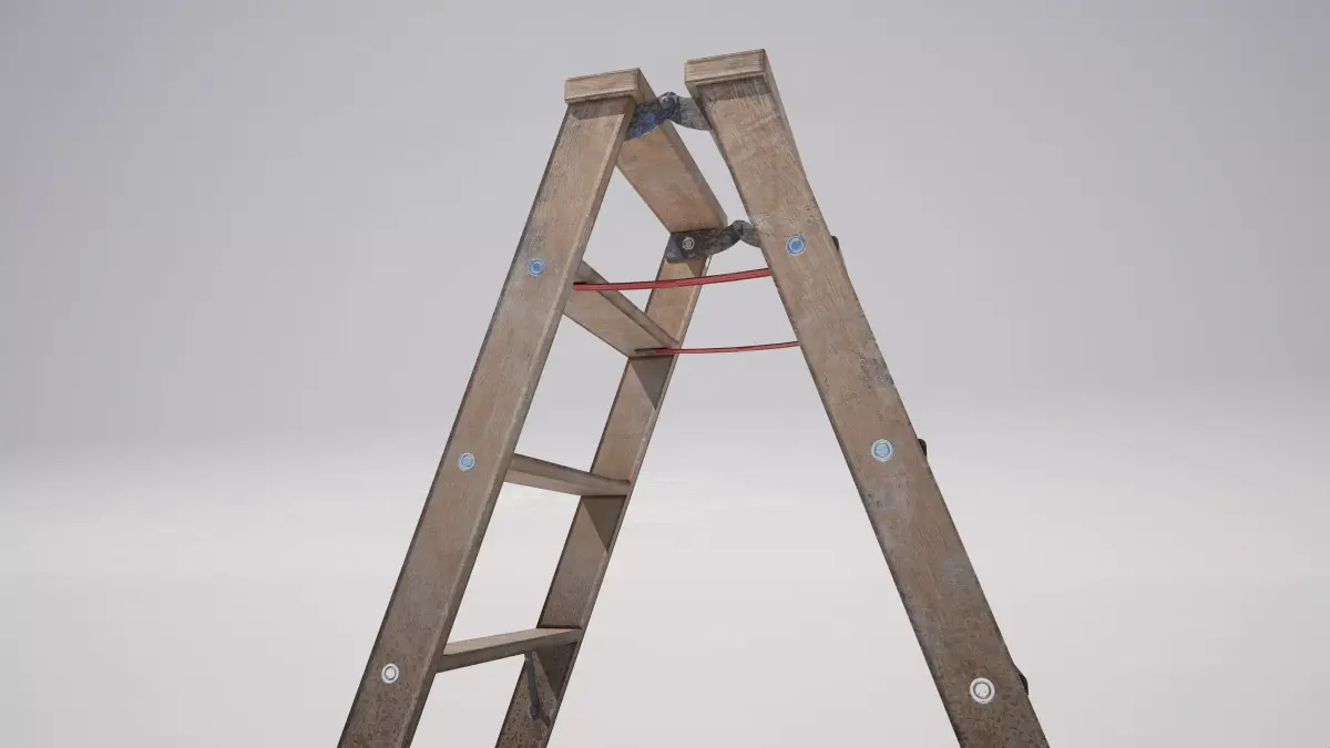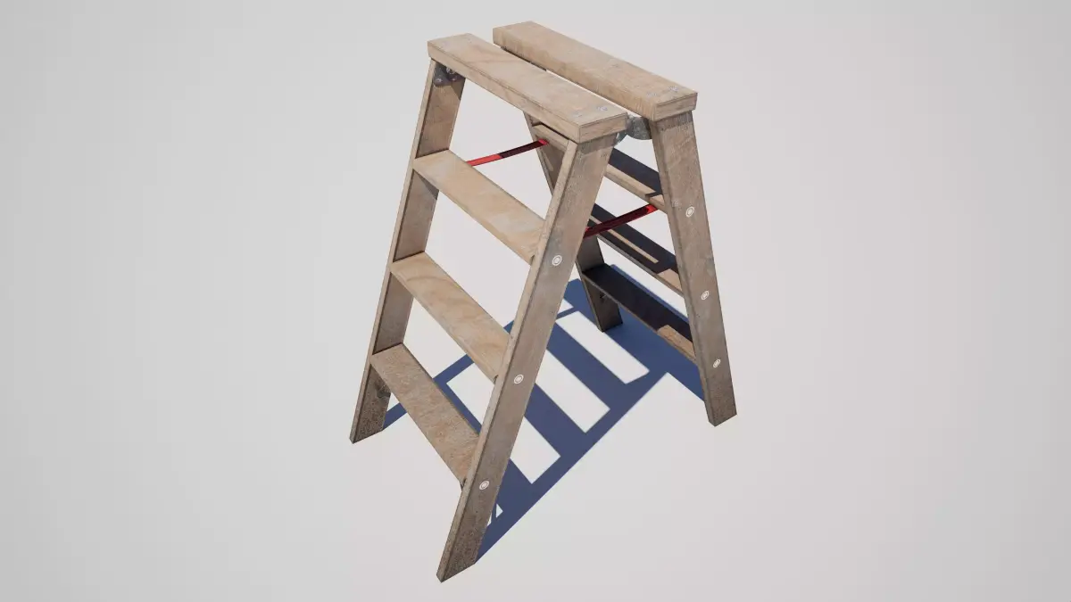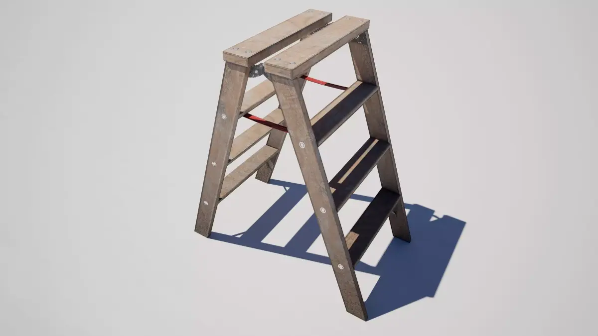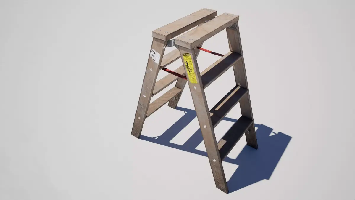 Detailed model of an industrial metal folding stepladder