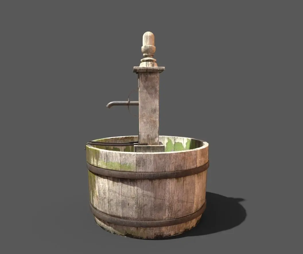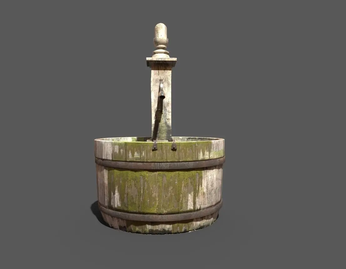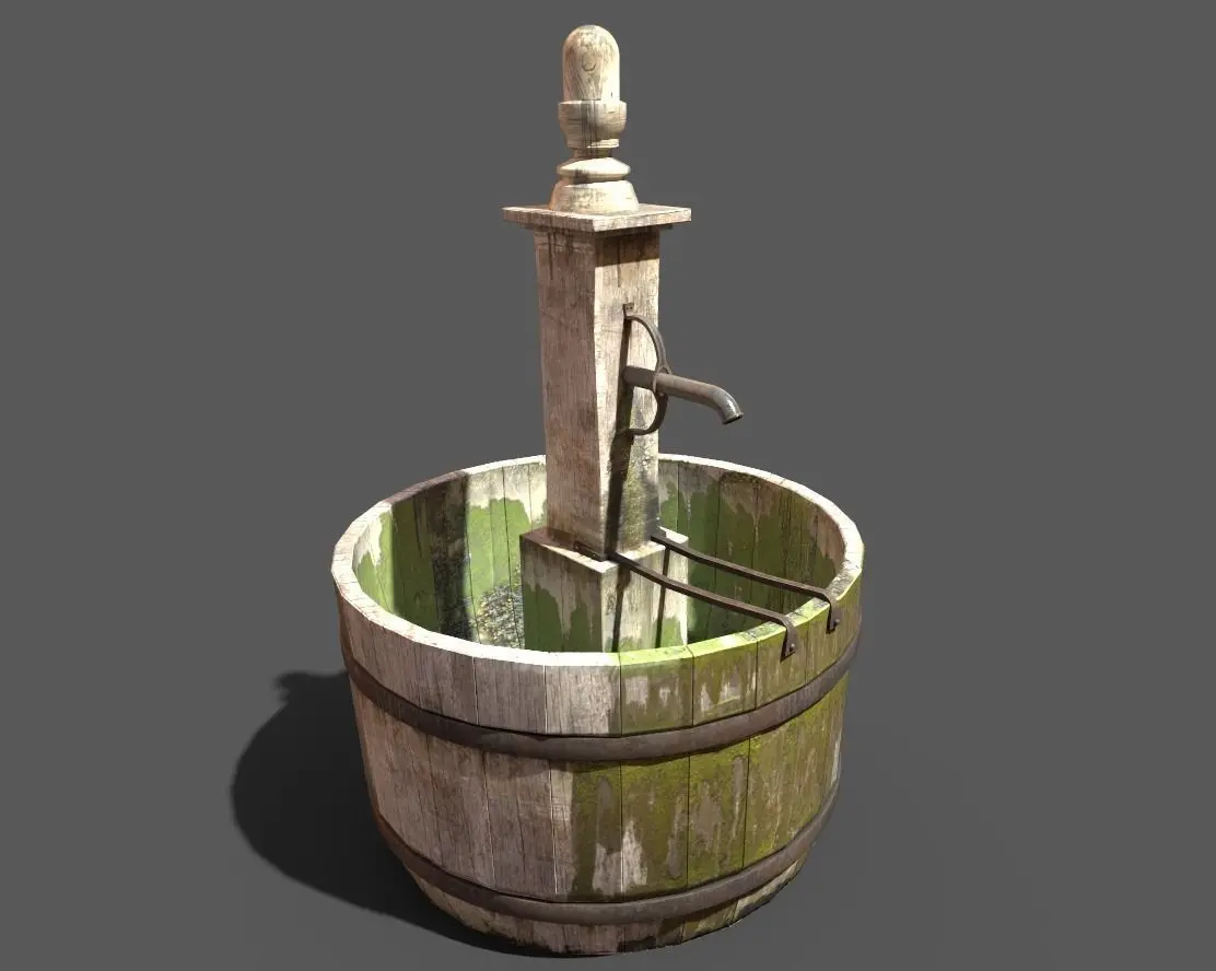 Model of wooden fountain . Model is very realistic.It has 2 PBR material.Maps are diffuse-specular-glossiness-height and normal. Model's textures has two sizes; 4096x4096-2048x2048. All maps are PNG formats .