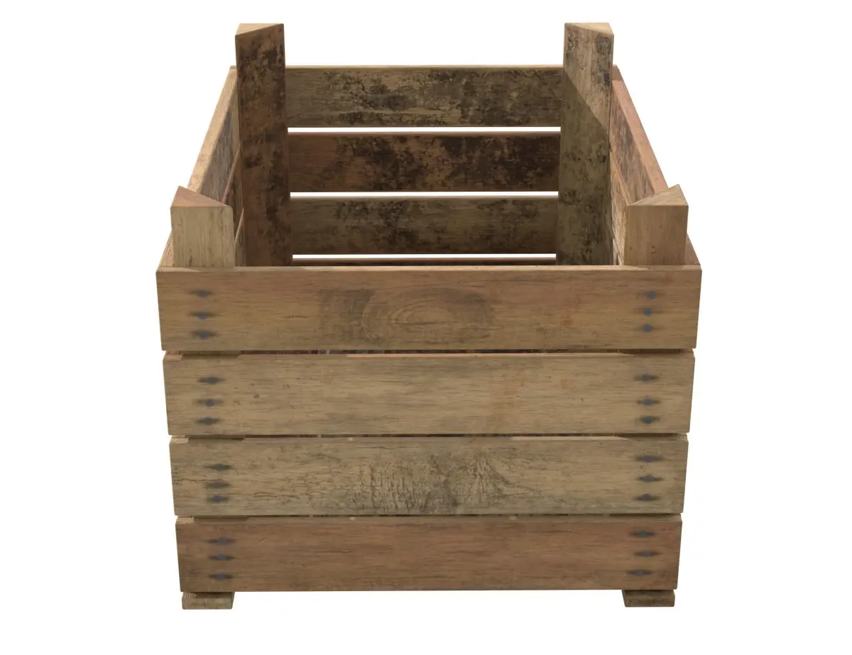Lowpoly model of Old desolate wooden fruit box. Can be used as game asset or render prop in your scene.