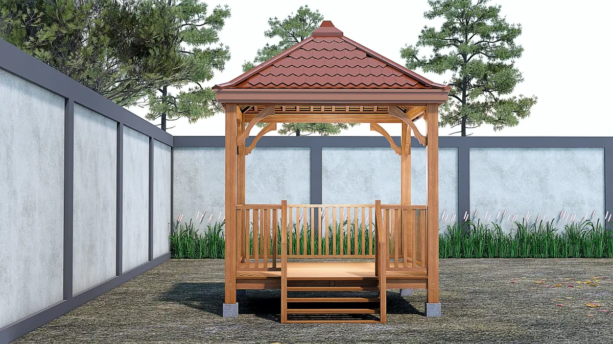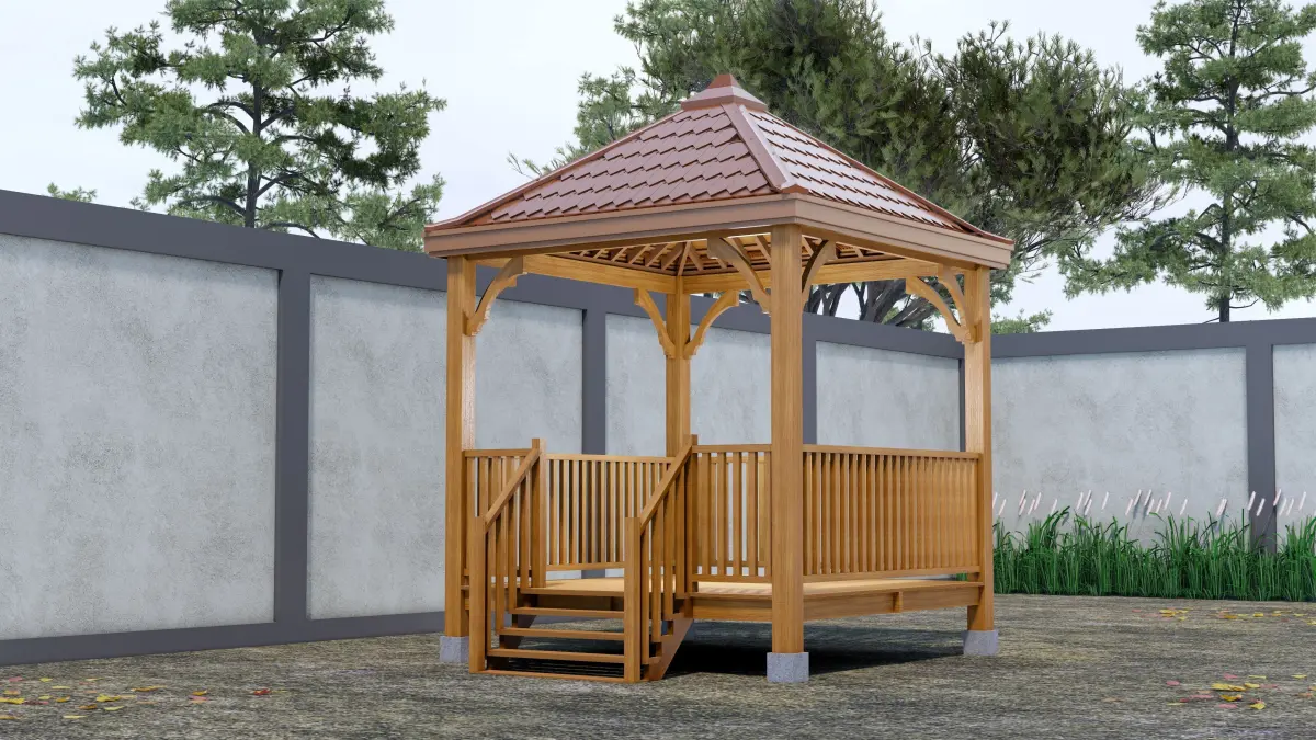 HomeCatalogWooden Gazebo with complete Contruction 3D model