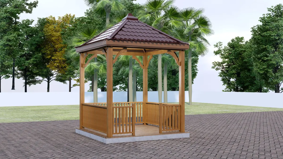 HomeCatalogWooden Gazebo with complete Contruction 3D model