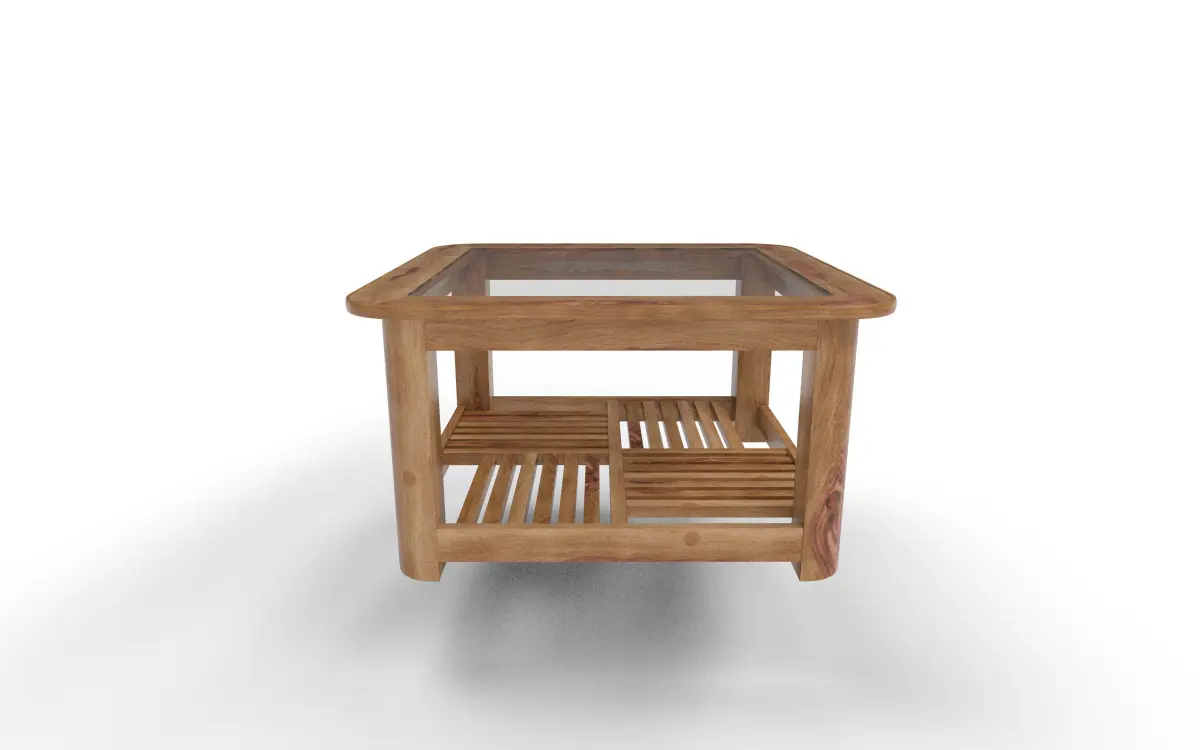 This is a high-quality 3D model of a wooden glass-top center table ** featuring a realistic design ideal for interior visualization, game environments, or AR/VR applications. The model showcases a square tabletop made of **clear tempered glass with a subtle floral etching, surrounded by a smooth, polished wooden frame with rich grain detailing.