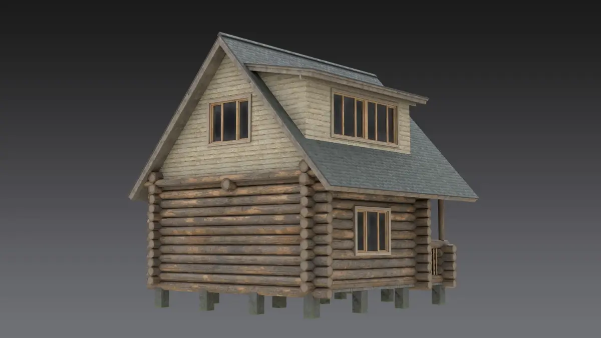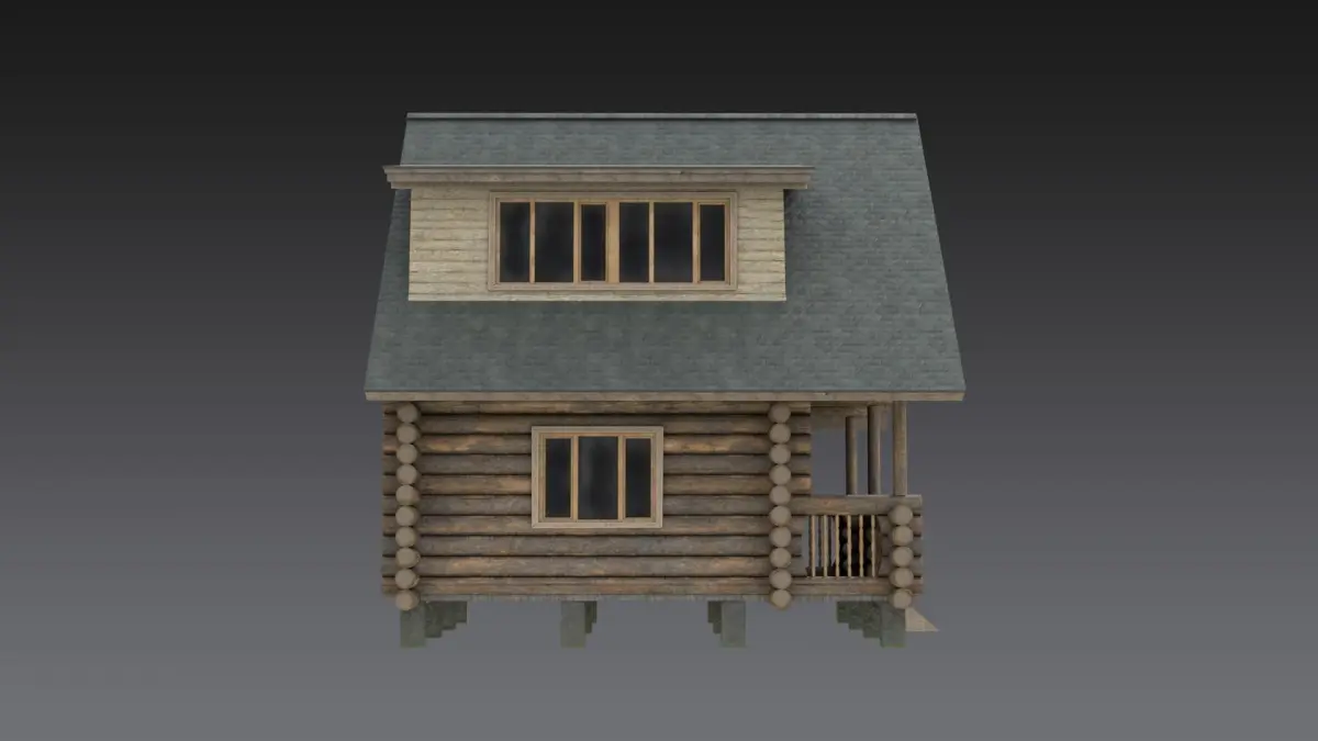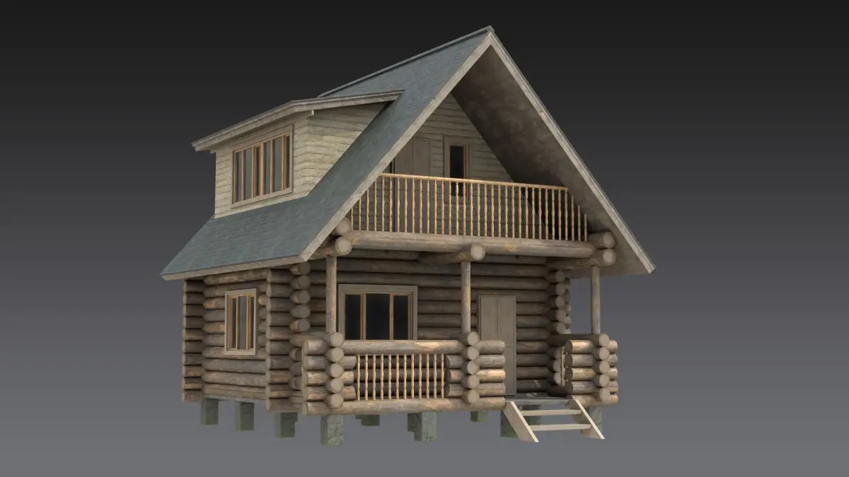 A two-story wooden house made of logs in the mountains, in the forest, in a village or in a remote corner of a city.