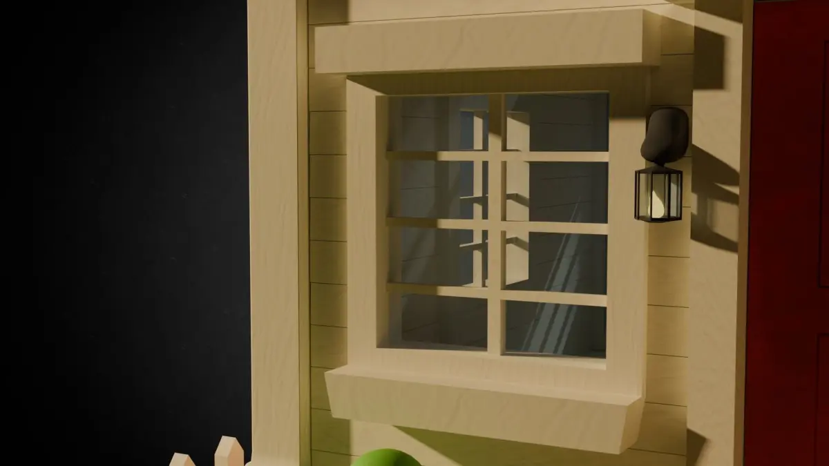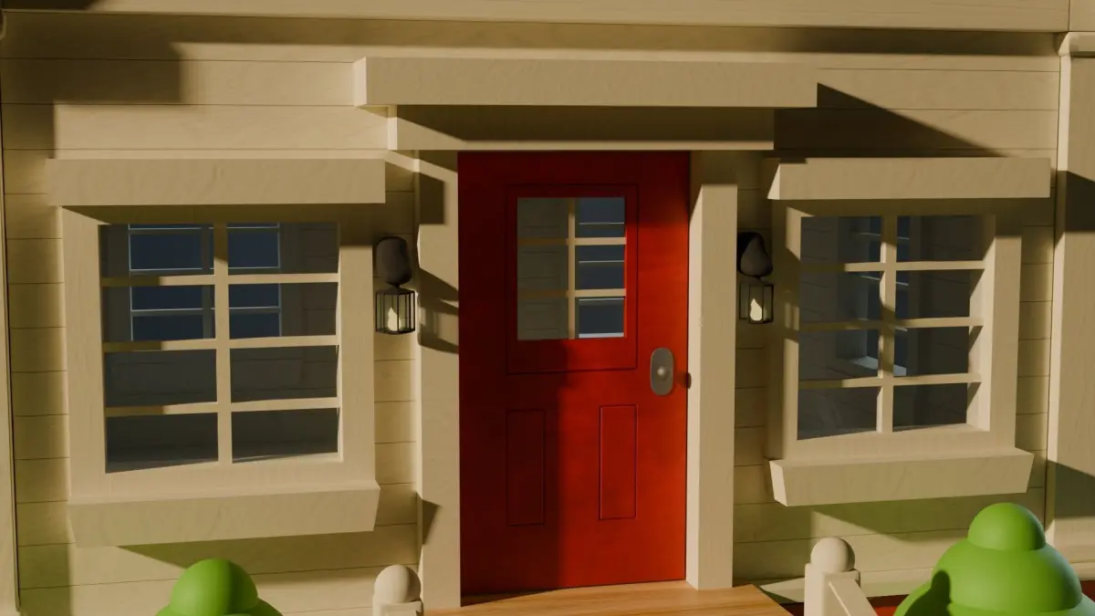 - Rich Red Front Door: Complete with a detailed doorknob and subtle weathering effects for a lived-in appearance.
