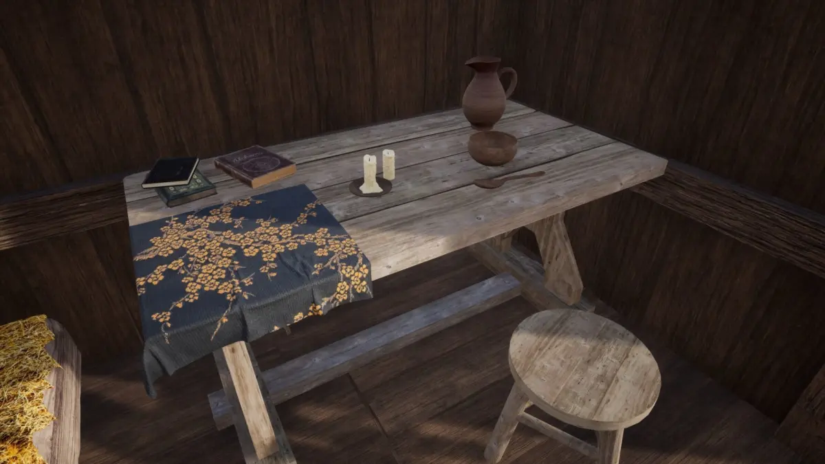 Wooden house with interior that I tried to repeat from the Gothic 3 game.