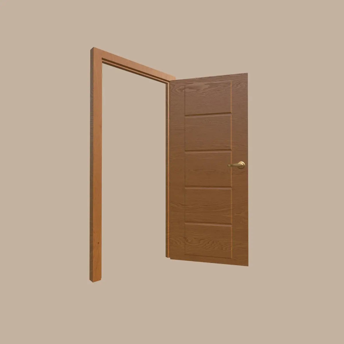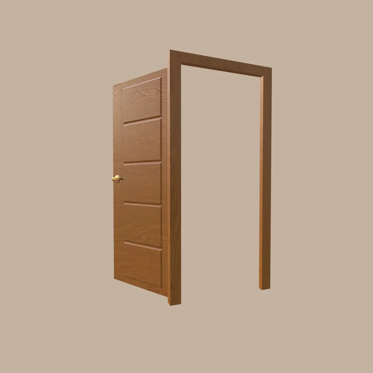This 3D model represents a modern-style wooden interior door featuring a natural wood grain texture and a metallic golden handle. Crafted in Blender with high-quality 2K PBR textures, this asset is ideal for architectural visualization, game environments, or furniture design showcases. Clean topology and efficient poly count make it suitable for both real-time and rendered scenes.