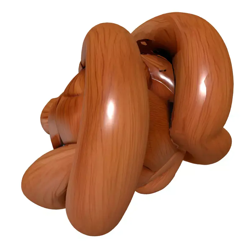 This exquisitely crafted 3D model presents an intricate abstract interlocking knot sculpture, designed with a sophisticated aesthetic. Each interwoven strand features a realistic, highly polished wooden texture, showcasing a beautiful grain that adds depth and authenticity to the design. The model's complex geometry and smooth curves create a captivating visual centerpiece, perfect for a wide array of digital projects. It is an ideal asset for enhancing architectural visualization scenes, providing a refined decorative element for interiors, or serving as an intriguing focal point in digital art and animation. Furthermore, its clean and optimized mesh makes it perfectly suitable for real-time applications, including immersive game development, interactive augmented reality (AR) experiences, and virtual reality (VR) environments. The robust design and meticulous detailing also ensure it is an excellent candidate for 3D printing, allowing for physical production of this unique art piece. Key features include clean, efficient, and subdivision-ready topology, ensuring smooth results at various levels of detail. The model is fully UV unwrapped for precise texture mapping and includes high-quality PBR (Physically Based Rendering) textures that accurately convey the lustrous wooden material and reflections. Supported file formats include GLB, OBJ, FBX, USD, STL, ABC, DAE, and PLY, ensuring broad compatibility across major 3D software and rendering engines, making it a versatile addition to any professional's asset library.