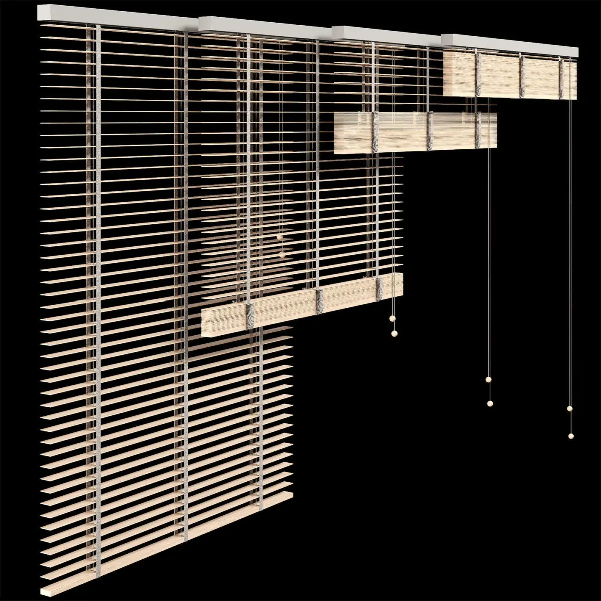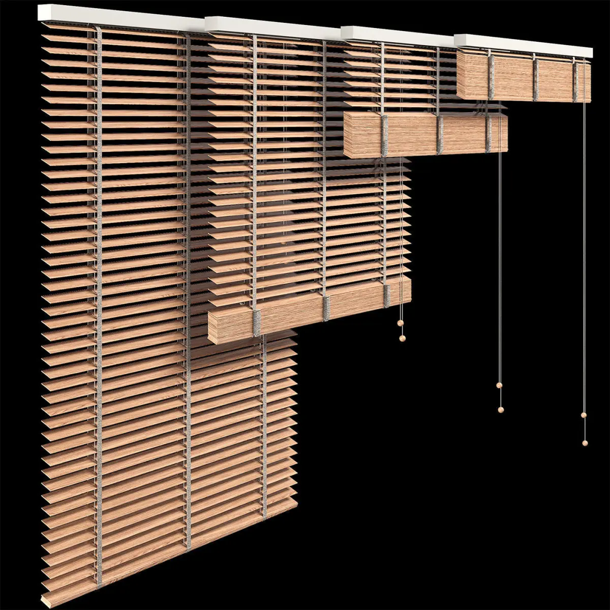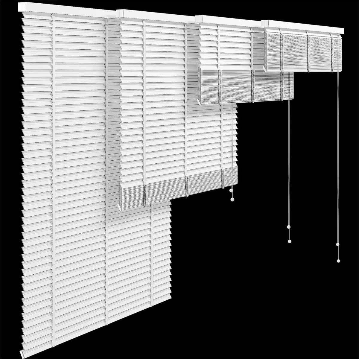 The archive contains four positions of blinds and three variations of the tilt of the lamellas with three color options.Dimensions:X: 1010mmY: 43mmZ: 1400mm