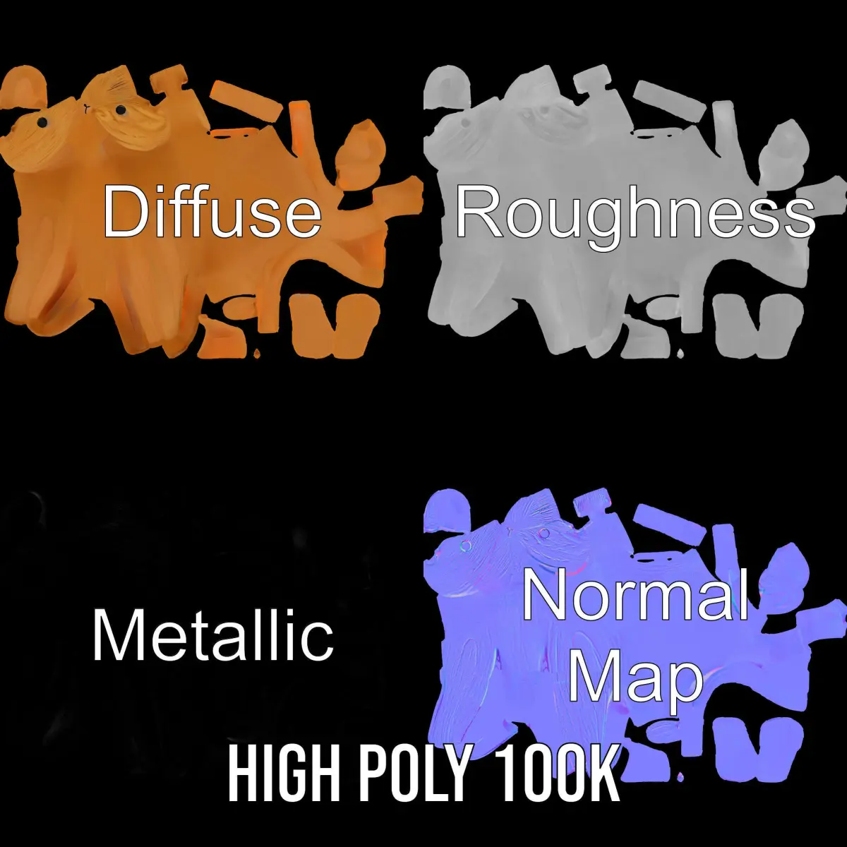 This Wooden Kangaroo Figurine Model Pack is perfect for decorative displays and educational purposes. Each model has 3 levels of detail: low-poly (1000 triangles for mobile), middle-poly (10,000 triangles for environment), and high-poly (100,000 triangles), allowing for use in production rendering (such as 3ds Max, Maya, Cinema4D, Blender, Vray/Corona/Cycles and more), game engines (Unity and Unreal compatible), and interactive presentations. The model's natural wood texture creates an authentic feel, making it ideal for interior design and virtual staging. PBR, Diffuse, NormalMap, and reflection/roughness/metallic textures are used, suitable for any modern rendering engine. Models are accurately unwrapped with no overlapping UV. All textures are 4096*4096 in size. The first image is the reference used for creating the 3D model. It is important to carefully evaluate the quality of the model by examining the preview images that display the topology and polygonal mesh. These previews (WIRE and WEB 3D Preview) clearly demonstrate how accurately the model matches the original reference and how well the geometry has been executed. Please like and leave a comment if you enjoy the model.