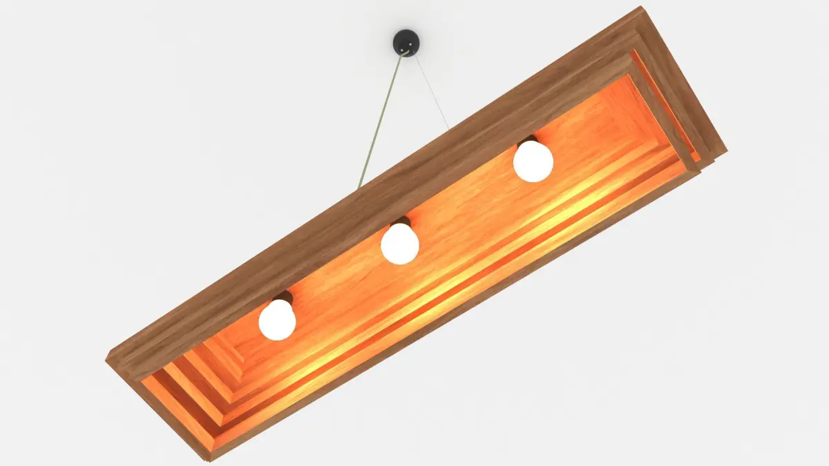 3ds Max model of the wooden lantern with 3 light bulbs. Unit measures: 800mm wide x 200mm deep x 1120mm high. The main material there is wood. Fasteners - stainless steel and metal painted black.