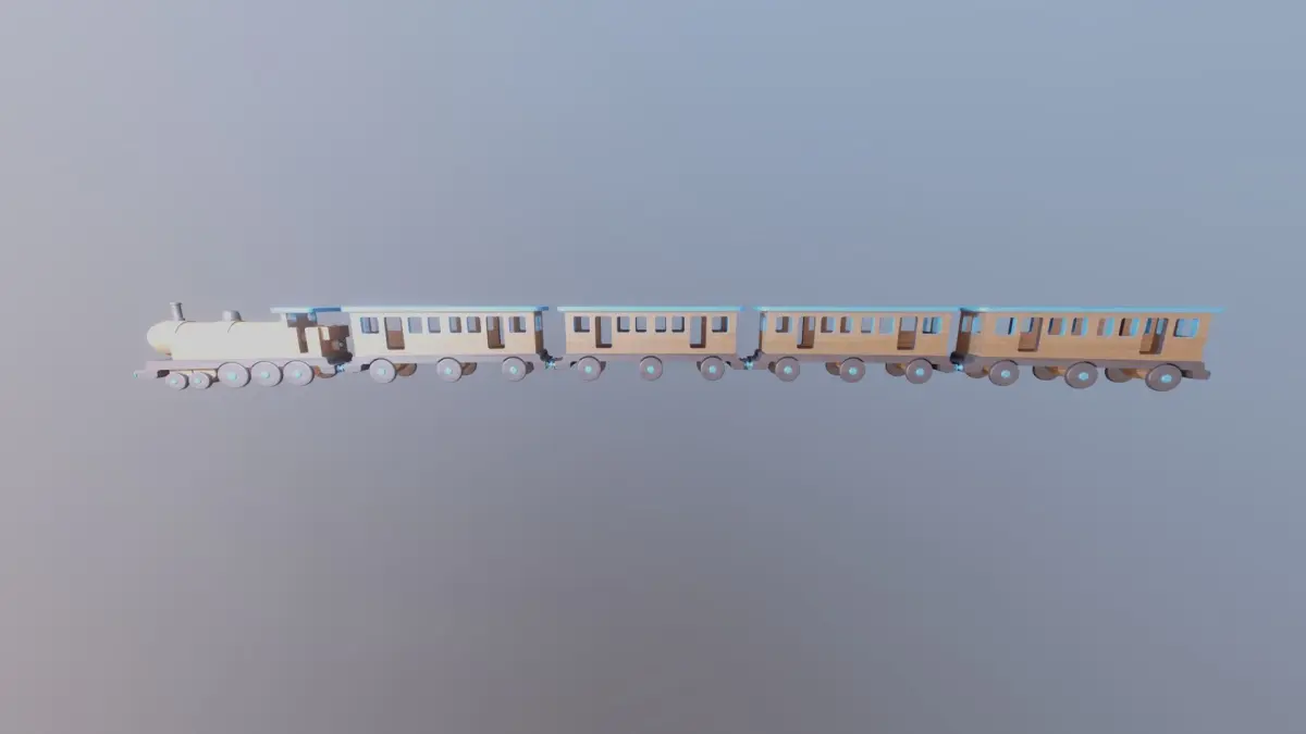 The models have been provided with wooden textures using procedural nodes to create a texture based on real-life wooden toys. Every single edge is bevelled (8 segments at 0.05cm or 0.5mm width) to reflect light as a real-life object would. Wheels are Rigged to an empty Sphear for easy animation. The train and carriages are all linked to each other through multiple shears parented together. A simple rotation of 1-8 degrees will create a natural-looking curve you may expect to see on a real train going around the bend.