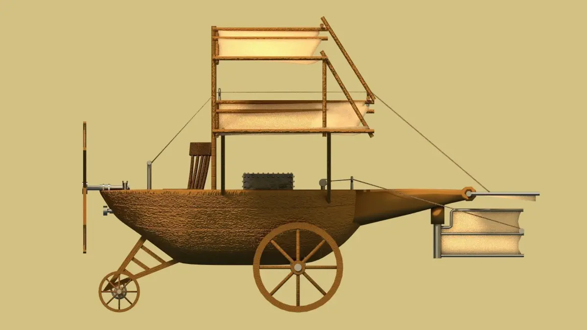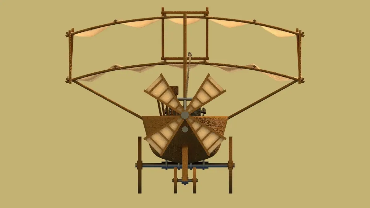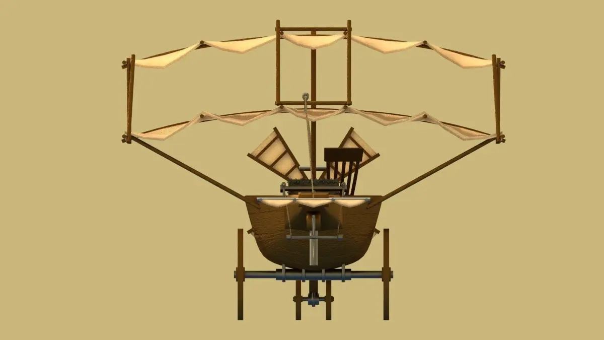 Here's a flying machine that I modeled in a few days. It would never fly, and Leanardo de Vinci would never have modeled something so unlikely to work, but it shows how unrealistic the ideas of some inventors of the time were. The model is ready for animation, with constraints and shape keys. It can be used for realistic or cartoon animation, and is ideal for games also. Its rendered in cycles render.