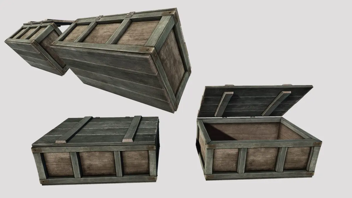 The Crate can be opened and packed with items.Model is unwrapped, and UV Mapped using Photoshop.Diffuse, Specular, Normal Maps.