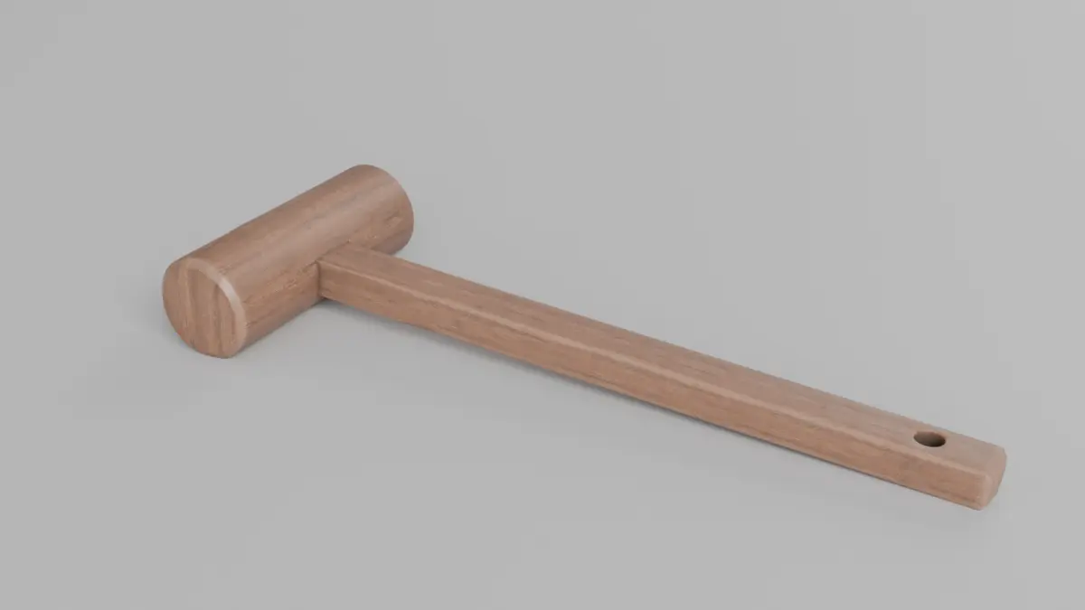 A realistic wooden mallet 3d model created in Blender.