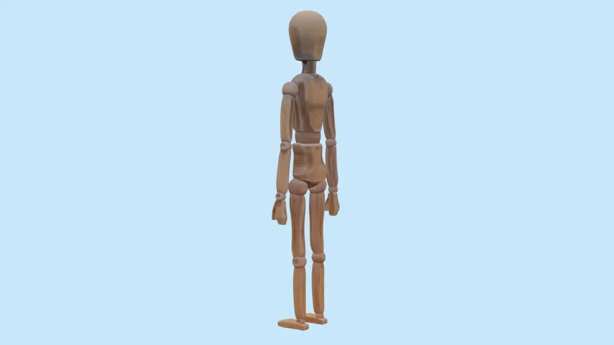 Cartoon Stylized wooden mannequin created in Blender.