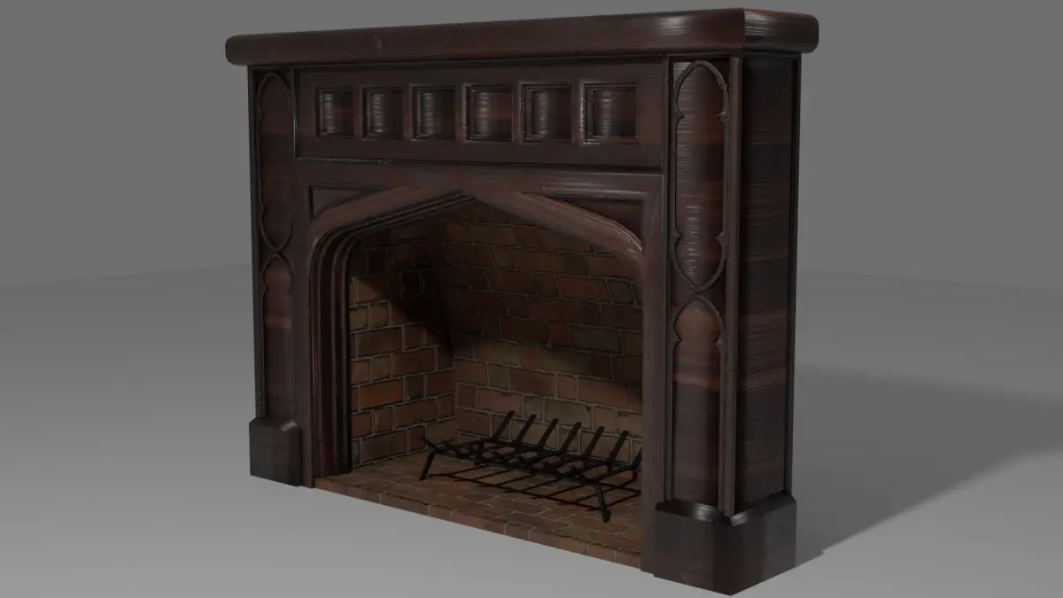 Game ready low poly fireplace w/ fire grate included.