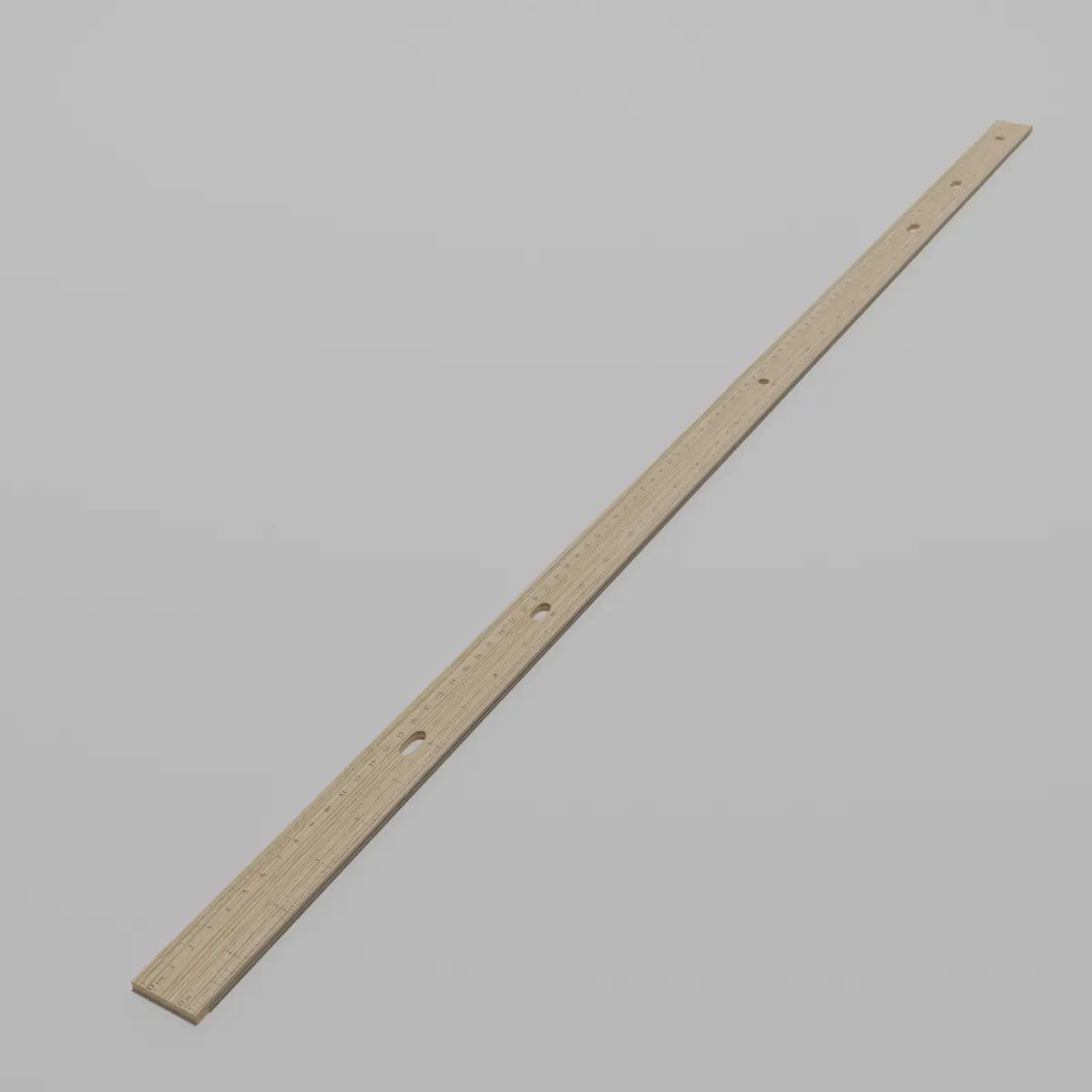 This is a royalty free model of a wooden meterstick. The dimensions are 2.9 cm (x) by 1 m (y) by 0.18 cm (z). The ruler's measurements should be to scale and measure out the proper amount. It composed of 1,337 vertices and 2,690 tris.