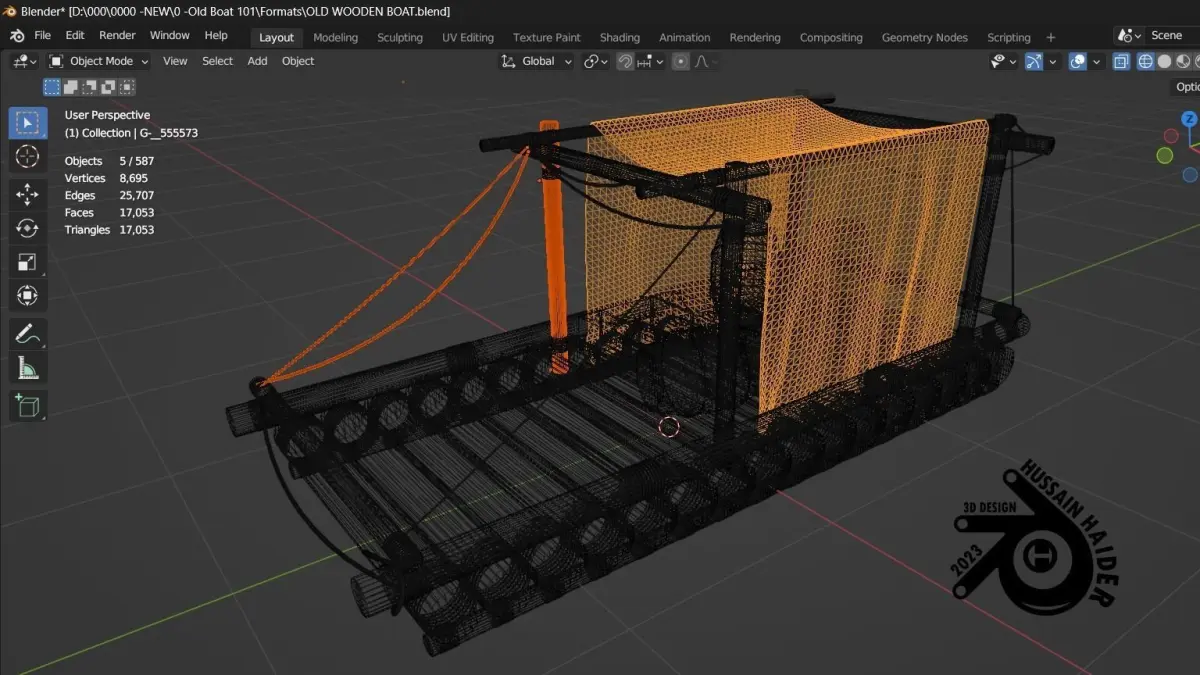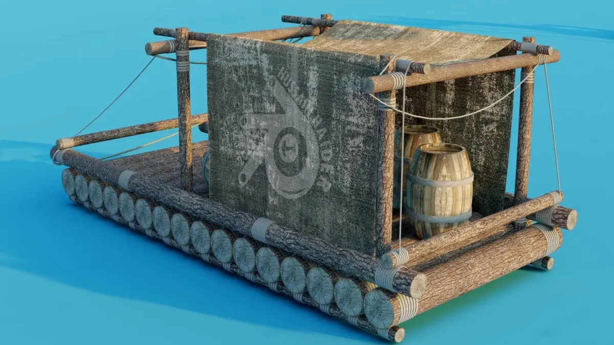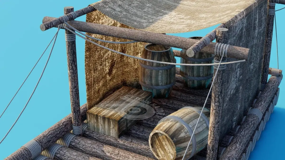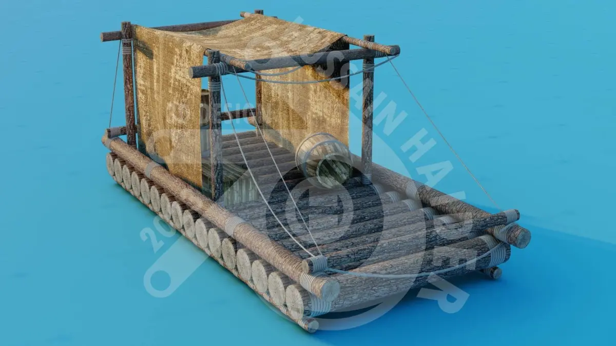 THE 3D MiNi wooden Boat Realistic design for Games Low-Poly design with crafts.