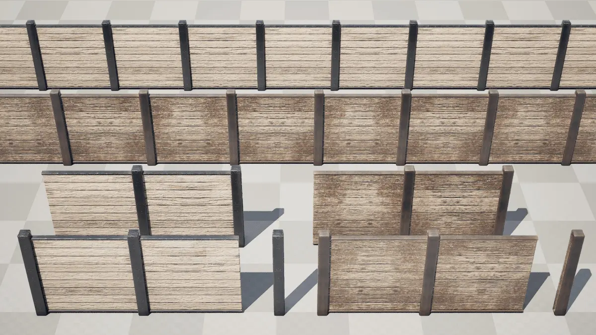 Wooden modular fence for a vegetable garden, around a house, plot. You can use it in realistic AAA games and videos, and in stylized ones.