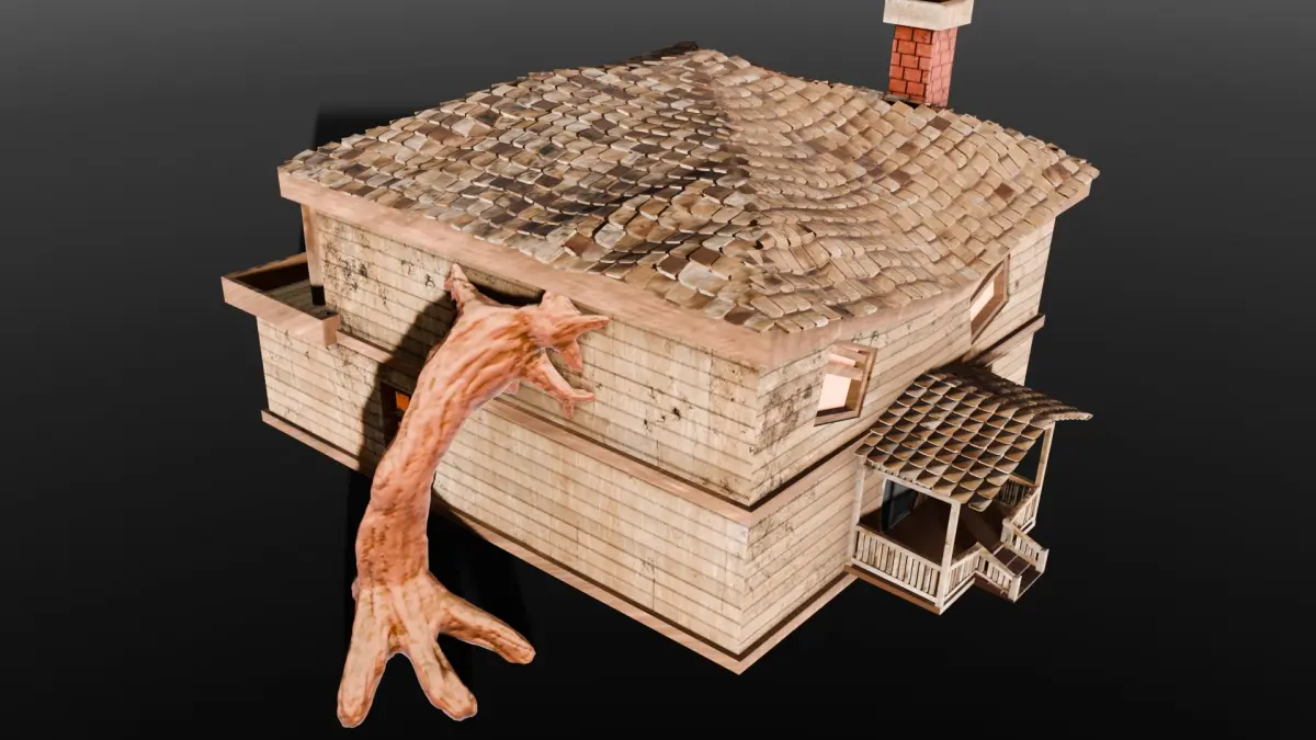 Textures: High-resolution textures have been meticulously applied to simulate the aged, weathered wood and other materials that make up the Monster House. These textures contribute significantly to the model's realism, providing lifelike details such as grain patterns, cracks, and worn surfaces.Materials: The model utilizes a variety of materials to define the surface properties, replicating the look and feel of different components of the house, such as wooden beams, shingles, and stone foundations. These materials have been carefully chosen and applied to enhance the overall aesthetic, ensuring that the house appears both ominous and believable.Animation and Rigging: