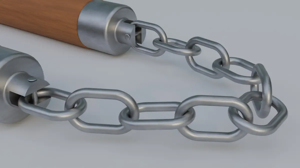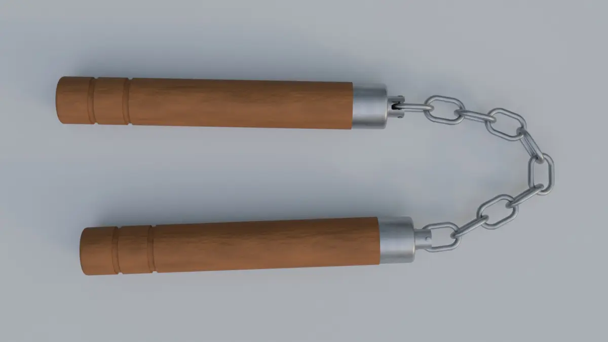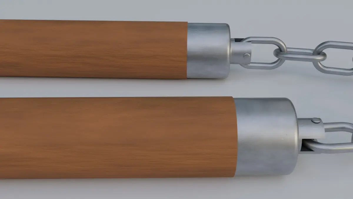 This is just a 3D model of wooden nunchucks with metal parts in a realistic style made in blender 4.0. This model has UV map and base textures in 2K and 4K. Good for rendering or gaming.